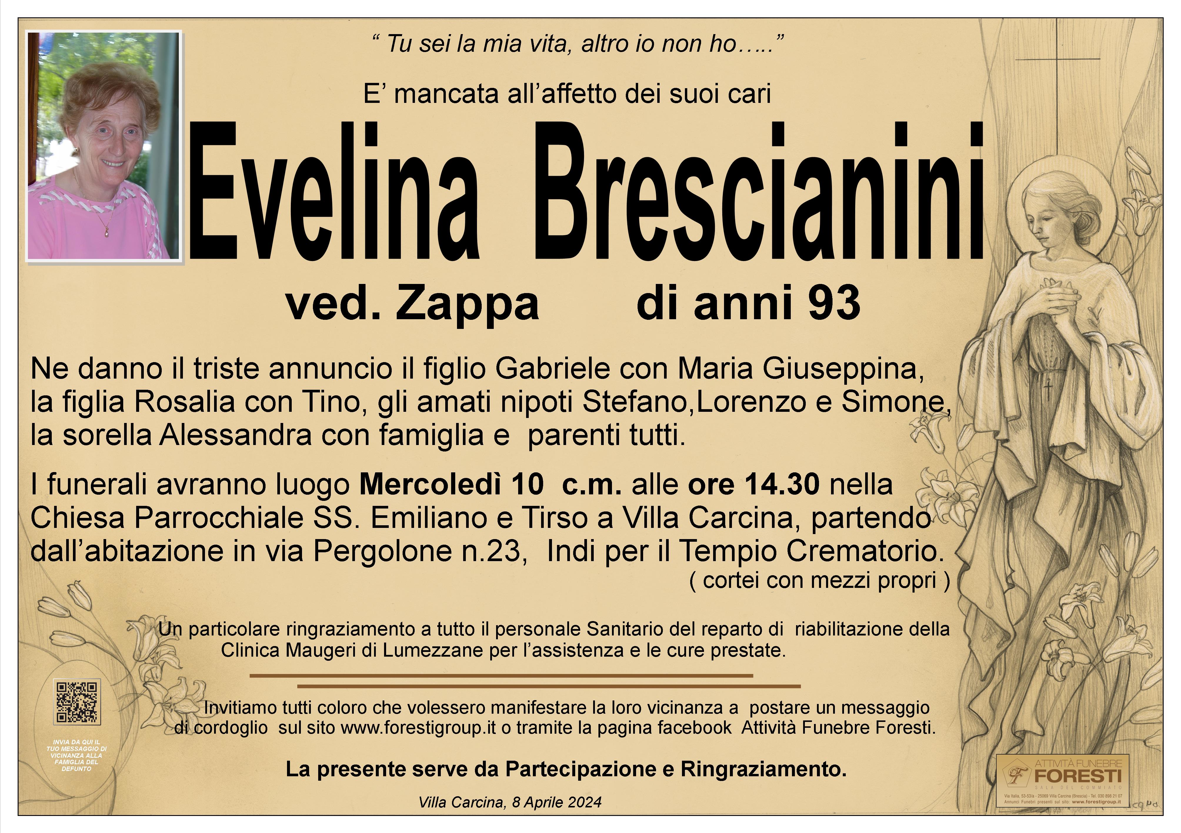 Le più sincere e cristiane condoglianze per la perdita della cara Evelina. Il Signore la ricompensi per il bene offerto alle persone che amava nella sua lunga vita di fede. Un ricordo particolare, sono vicino alla famiglia con la preghiera.