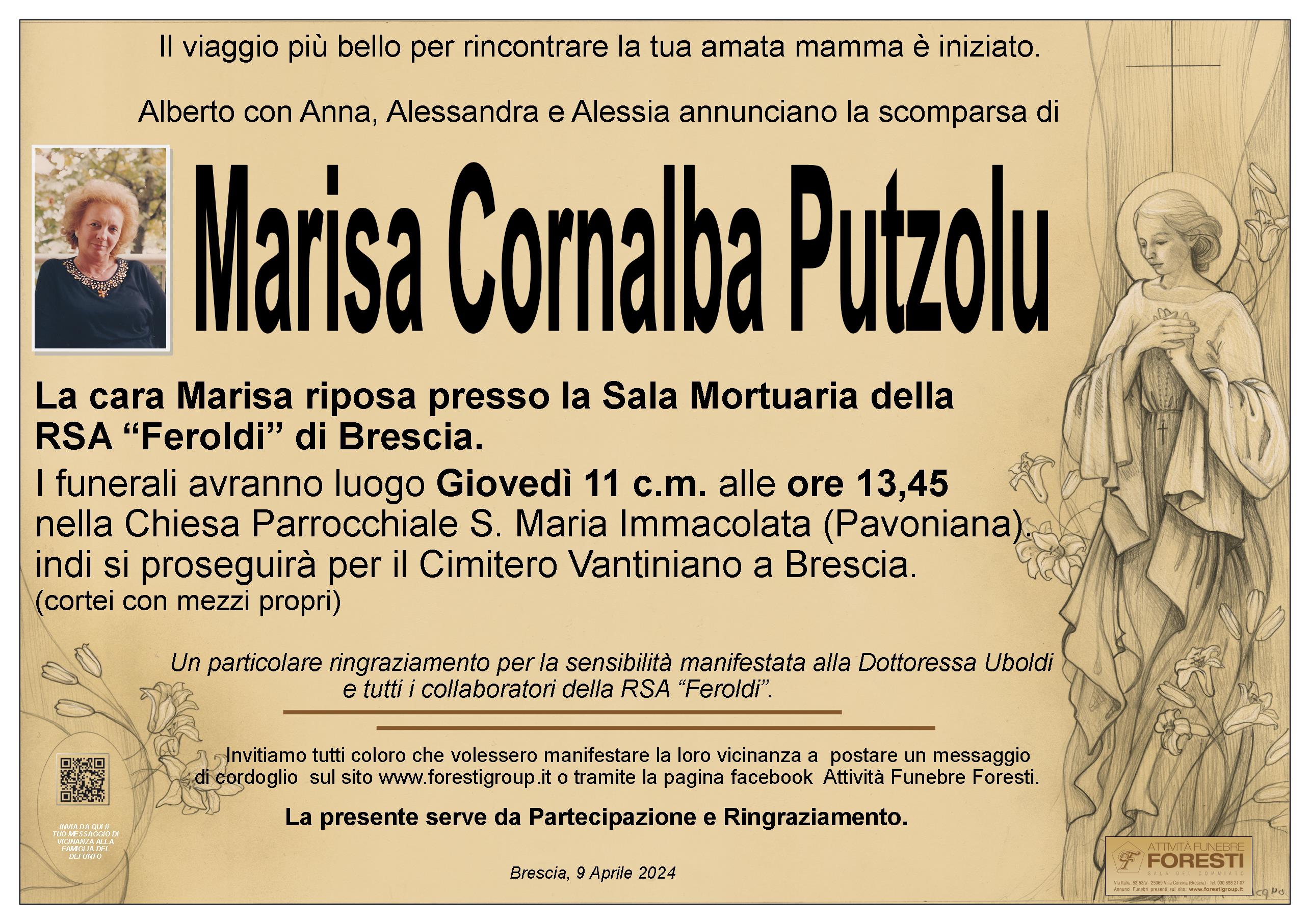 LA CARA MARISA RIPOSA PRESSO LA SALA MORTUARIA DELLA RSA " FEROLDI" DI BRESCIA.