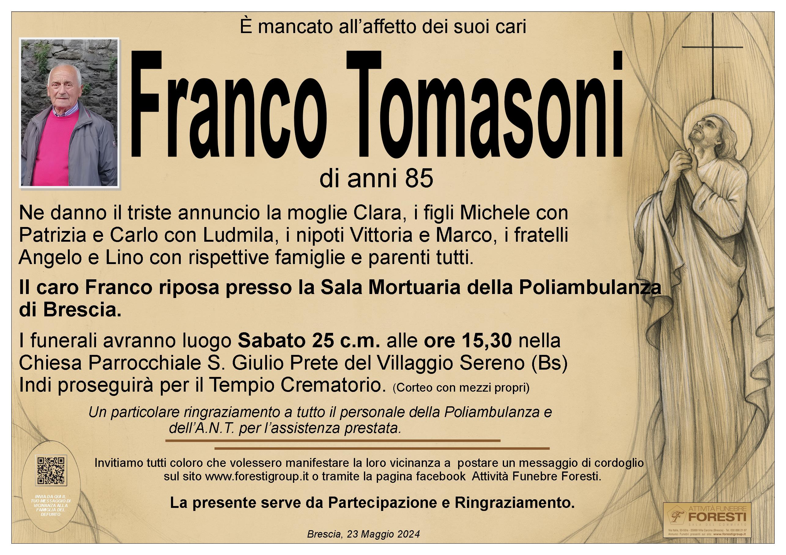 Il caro Franco riposa presso la Sala Mortuaria della Poliambulanza di Brescia.