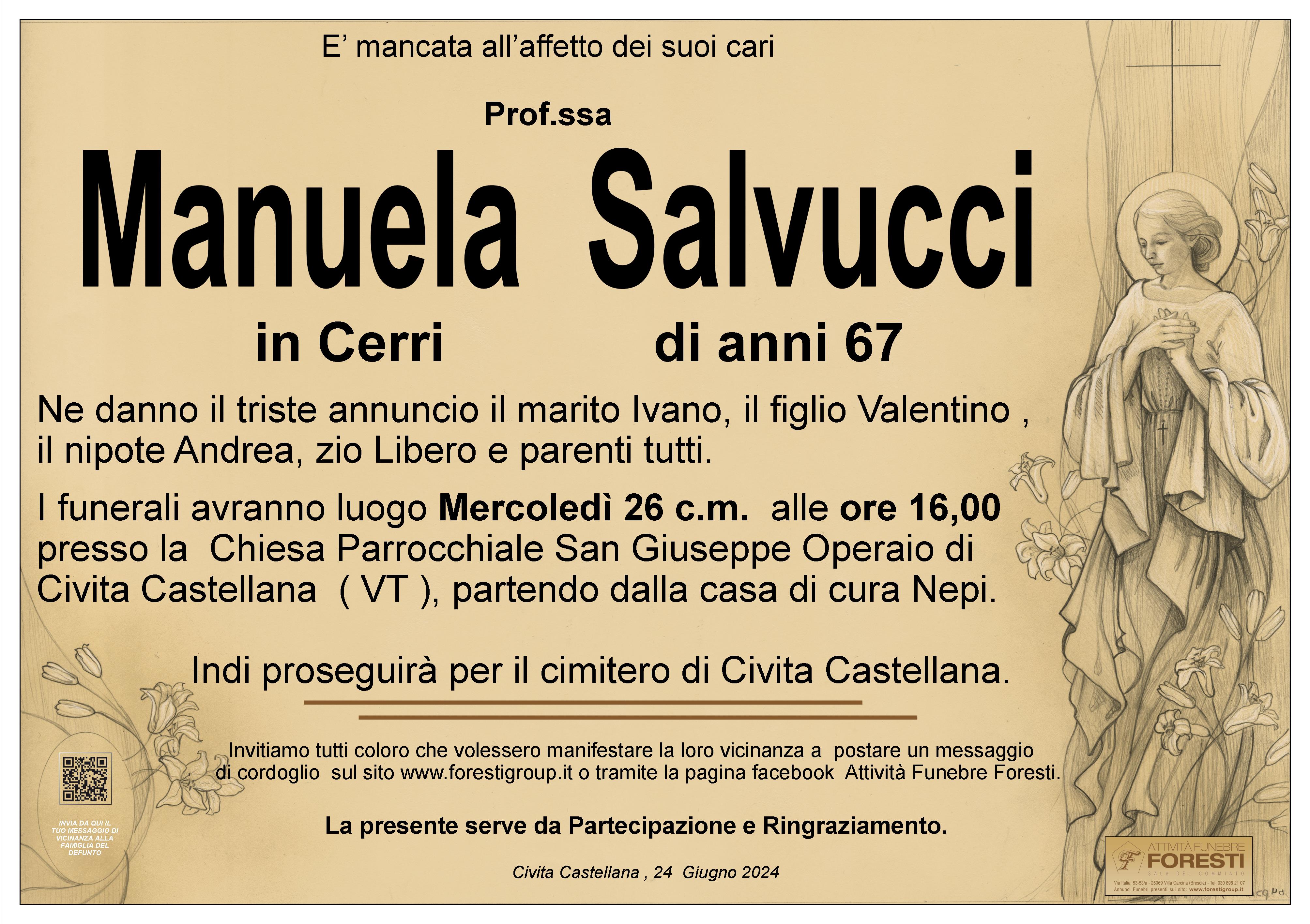Cari Valentino ed Ivano, siamo immensamente dispiaciuti nell'apprendere questa notizia La cara Manuela, il suo dolce sorriso non li potremo mai dimenticare.. Sincere condoglianze. Federica, Simona Filipponi e famiglie.