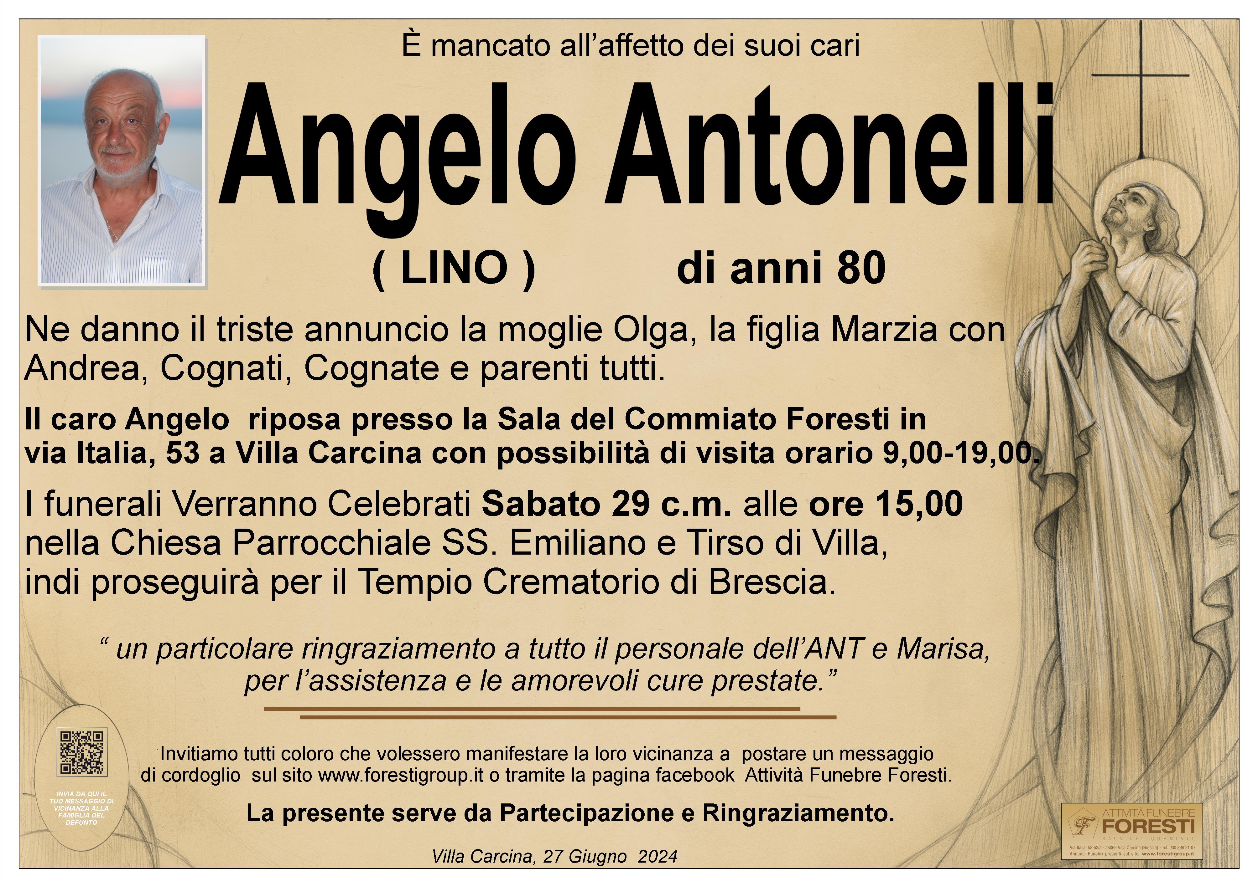 La nipote Tiziana con Maurizio, la mamma Resi , i figli Matteo, Valentina e Isabella con le rispettive famiglie,con tanto affetto sono vicine a Olga e Marzia per la perdita del caro Angelo.