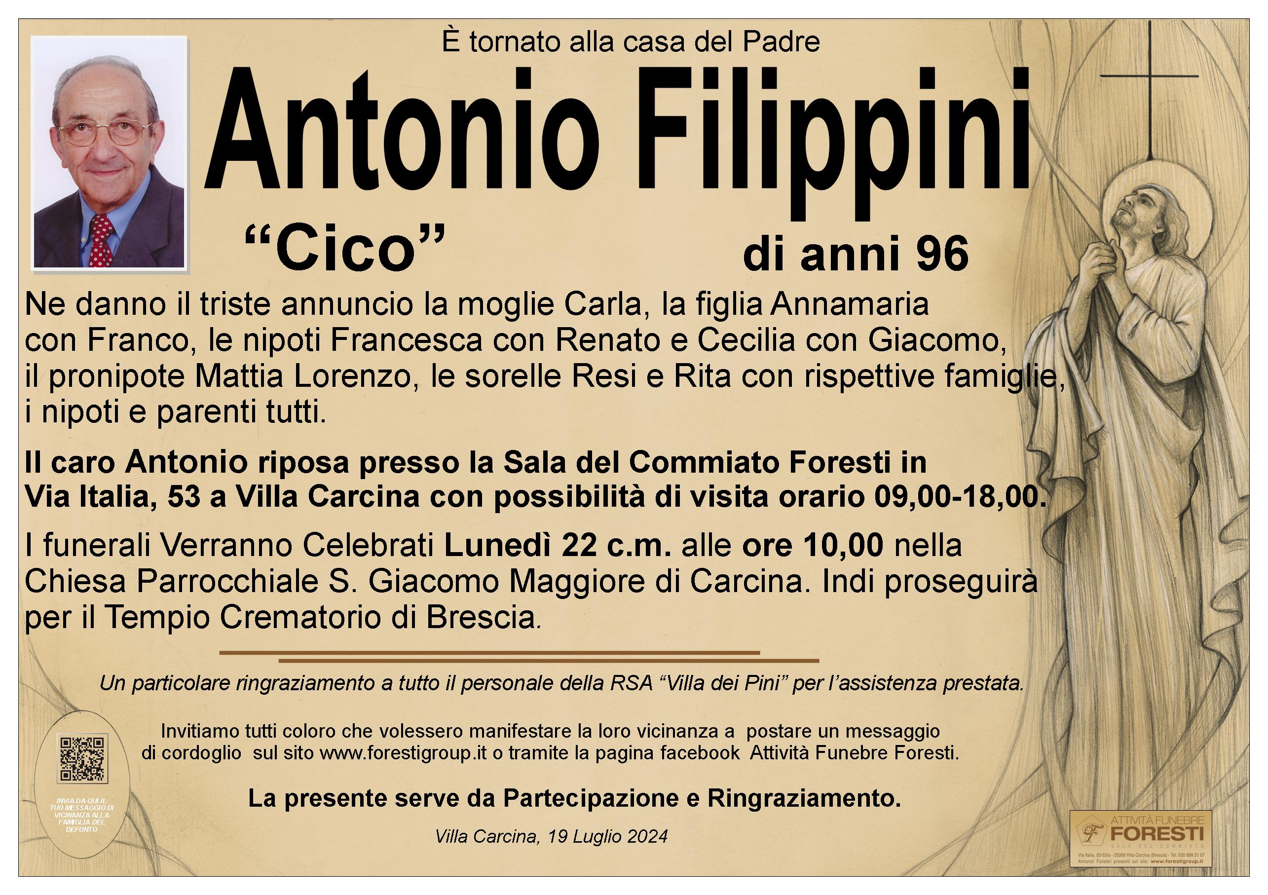 Il caro Antonio riposa presso la Sala del Commiato Foresti in Via Italia, 53 a Villa Carcina con possibilità di visita orario 09,00-18,00.