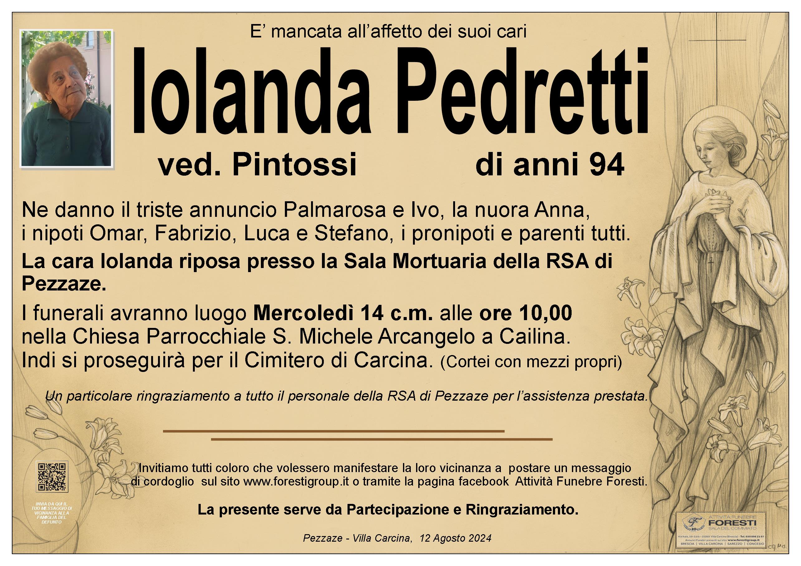 La cara Iolanda riposa presso la Sala Mortuaria della RSA di Pezzaze.