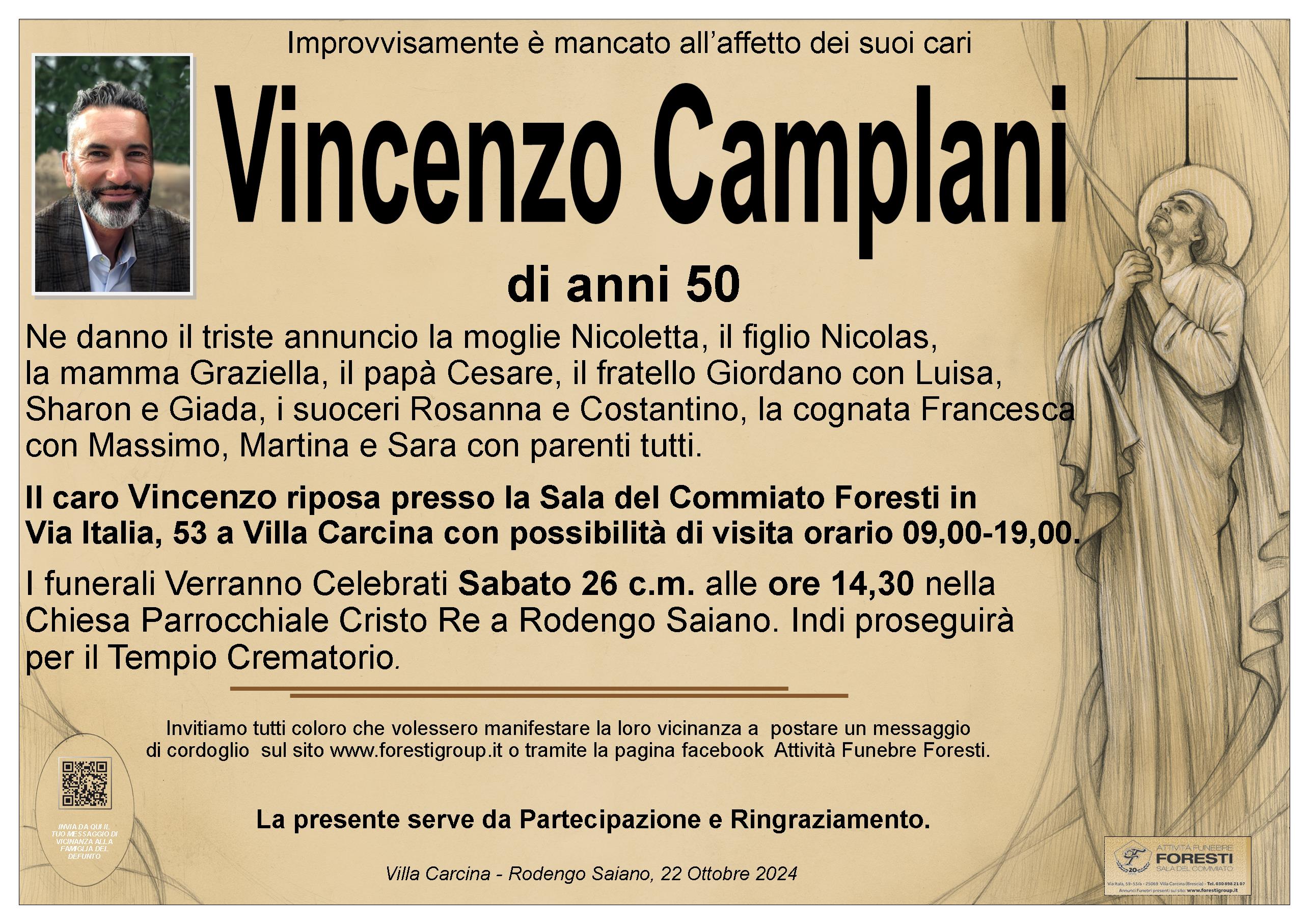 Enrico Camplani, Rachele con i figli Michela,Edoardo ed Emanuela porgono le più sentite condoglianze a Cesare e famiglia per la perdita del caro Vincenzo.