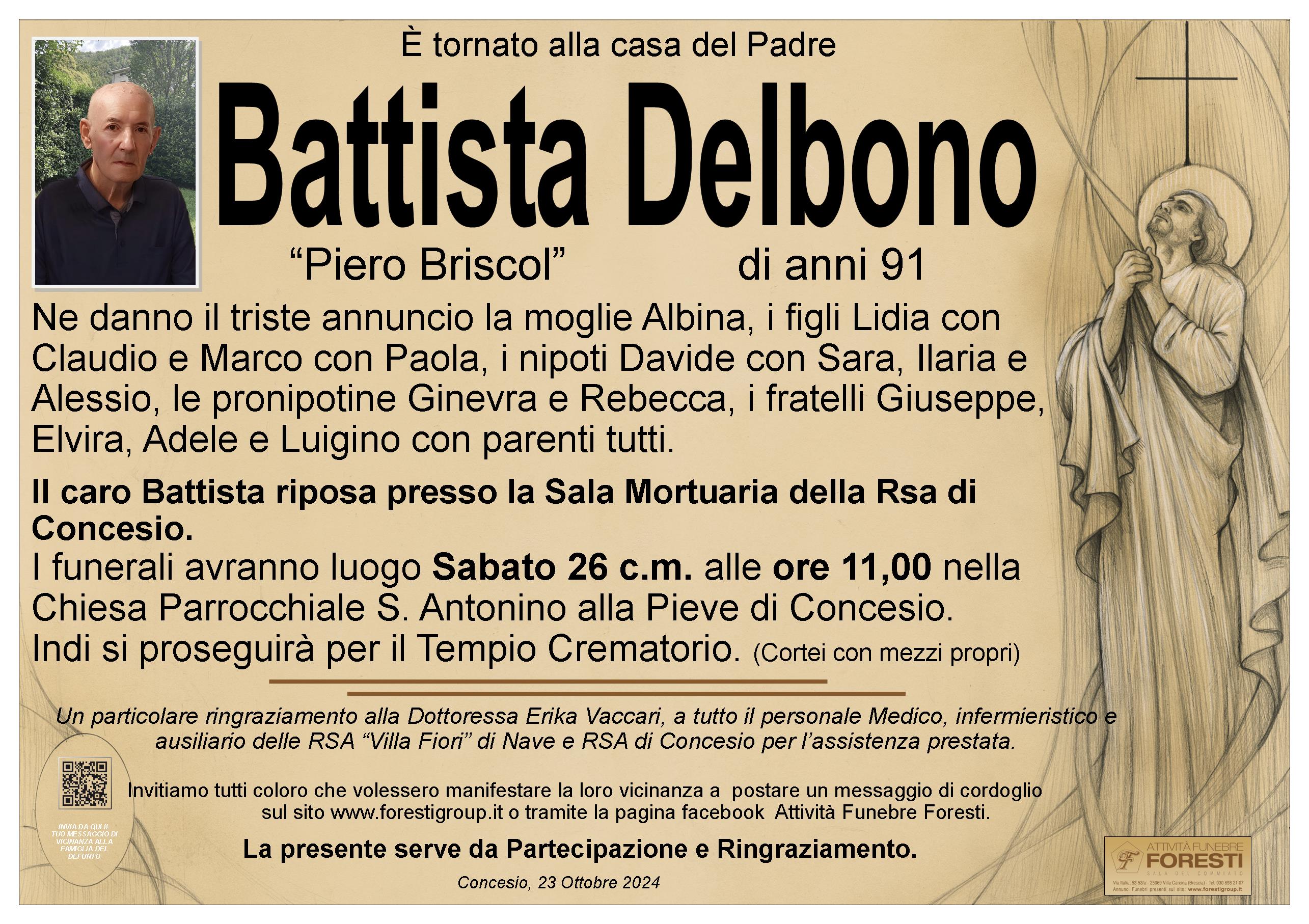Il caro Battista riposa presso la Sala Mortuaria della Rsa di Concesio.