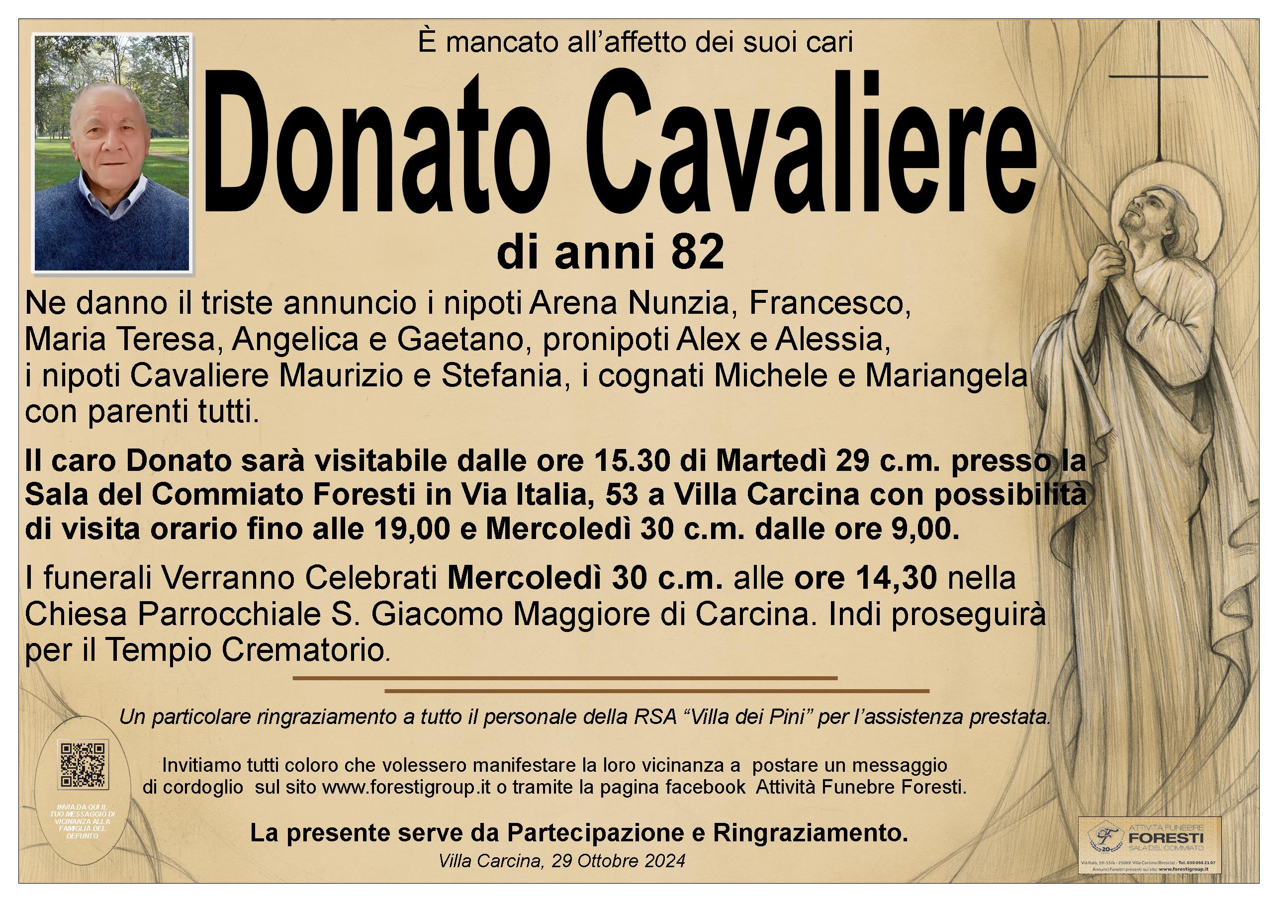 Il caro Donato sarà visitabile dalle ore 15,30 presso la Sala del Commiato Foresti in Via Italia, 53 a Villa Carcina con possibilità di visita fino alle 19,00, e dalle ore 9,00 di Mercoledì 30 c.m..