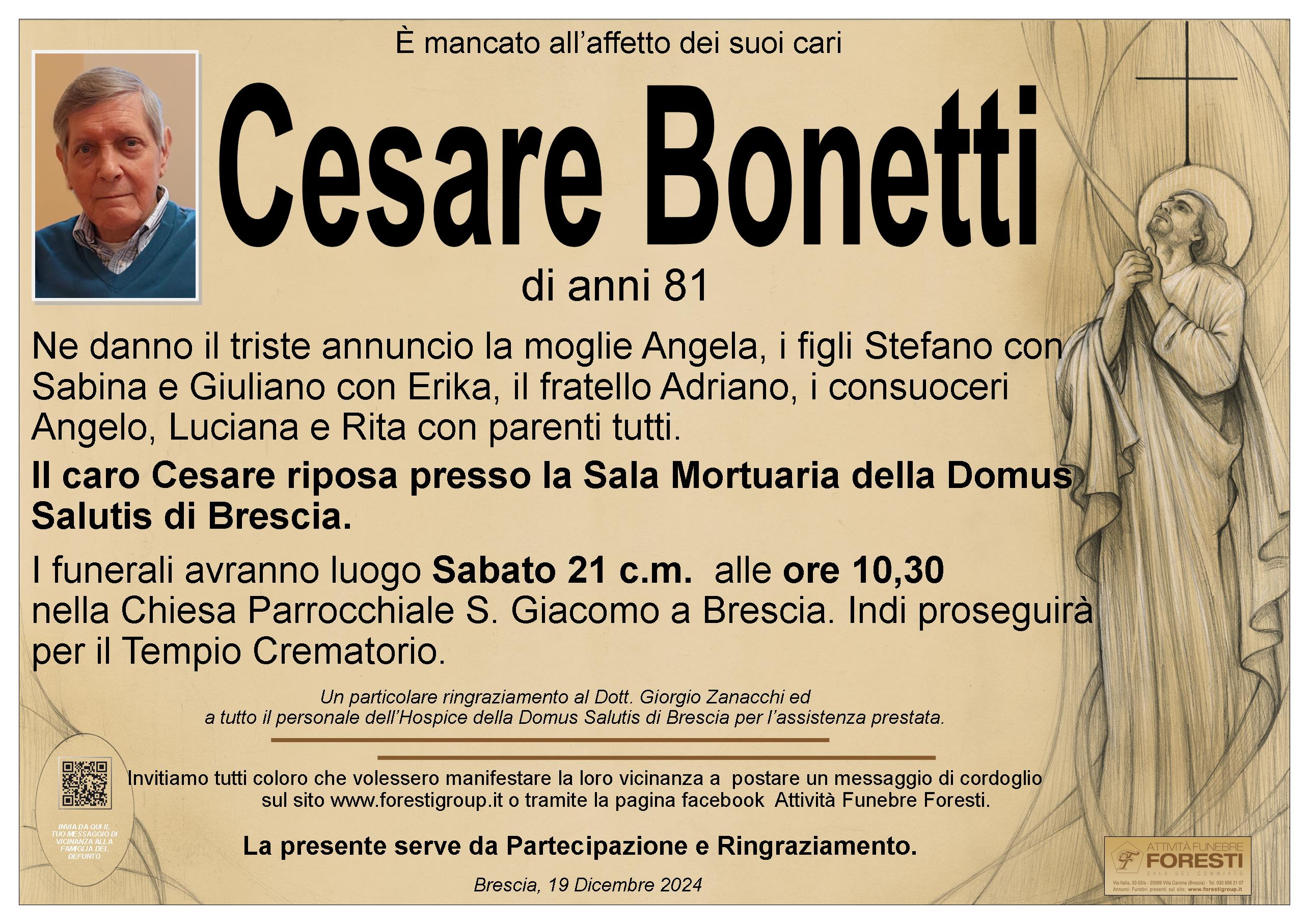 Il caro Cesare riposa presso la Sala Mortuaria della Domus Salutis di Brescia.