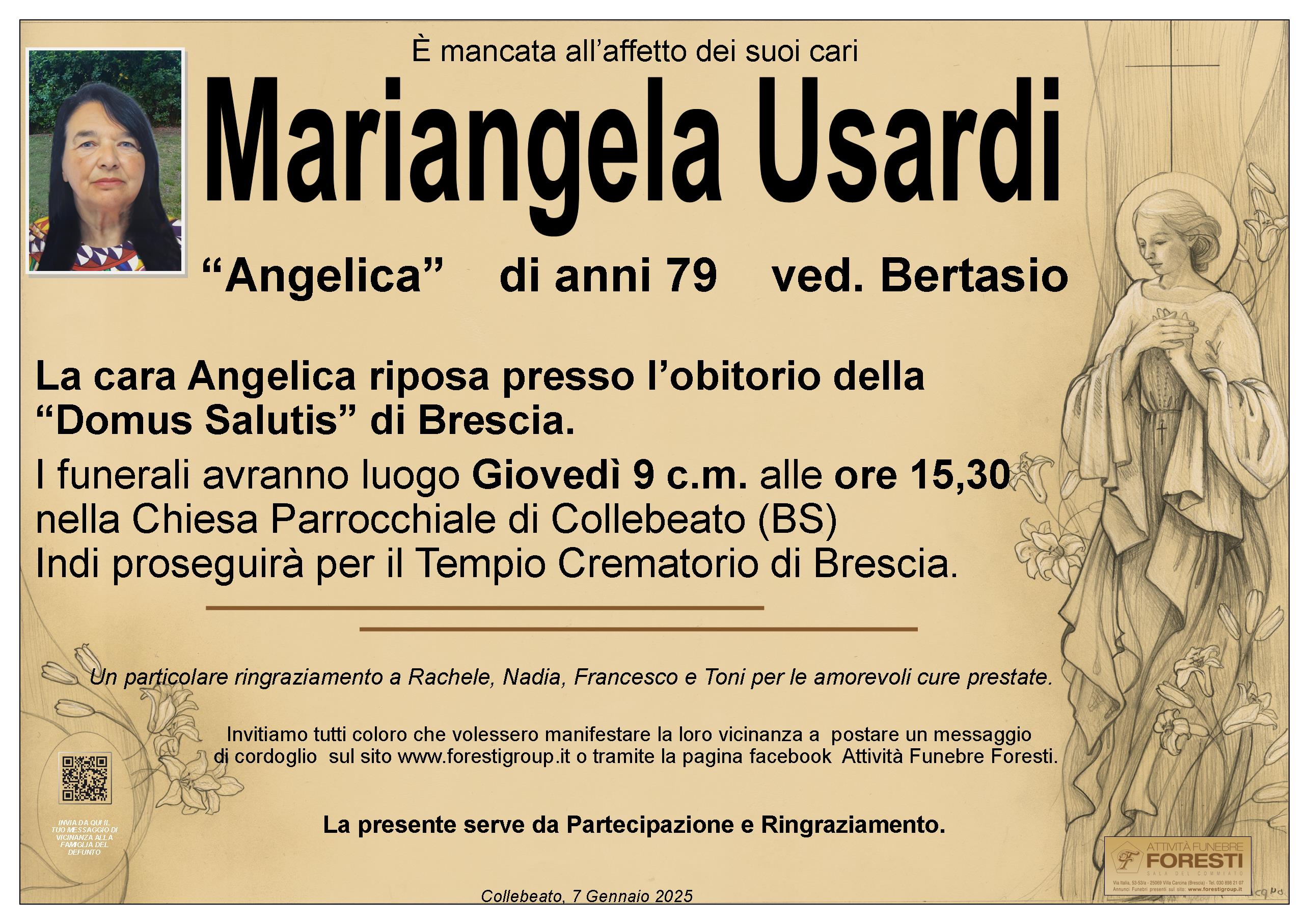 I funerali avranno luogo Giovedì 9 c.m. alle ore 15,30 nella Chiesa Parrocchiale di Collebeato (BS). Indi proseguirà per il Tempio Crematorio di Brescia.