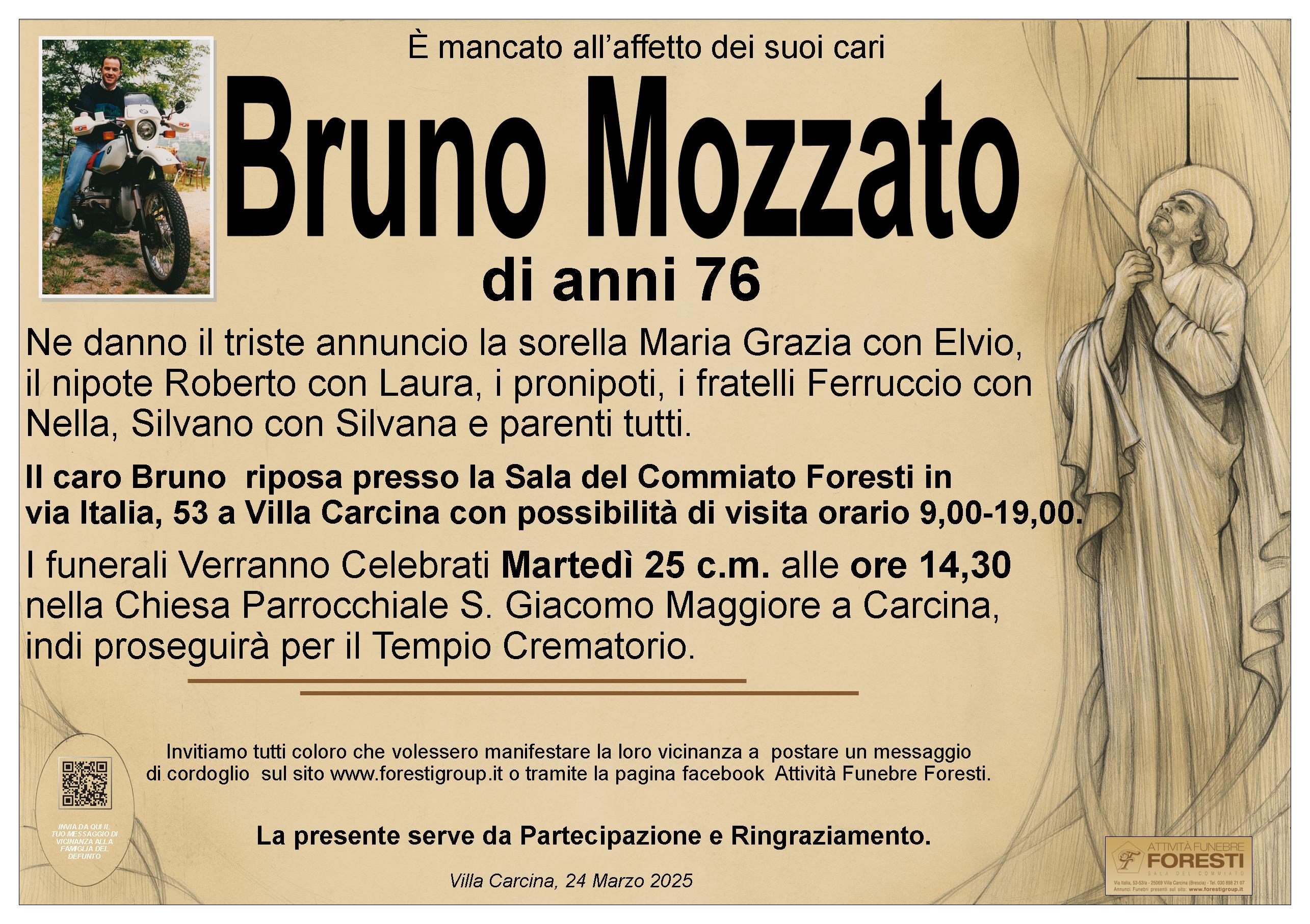 Il caro Bruno riposa presso la Sala del Commiato Foresti in via Italia, 53 a Villa Carcina con possibilità di visita orario 9,00-19,00.