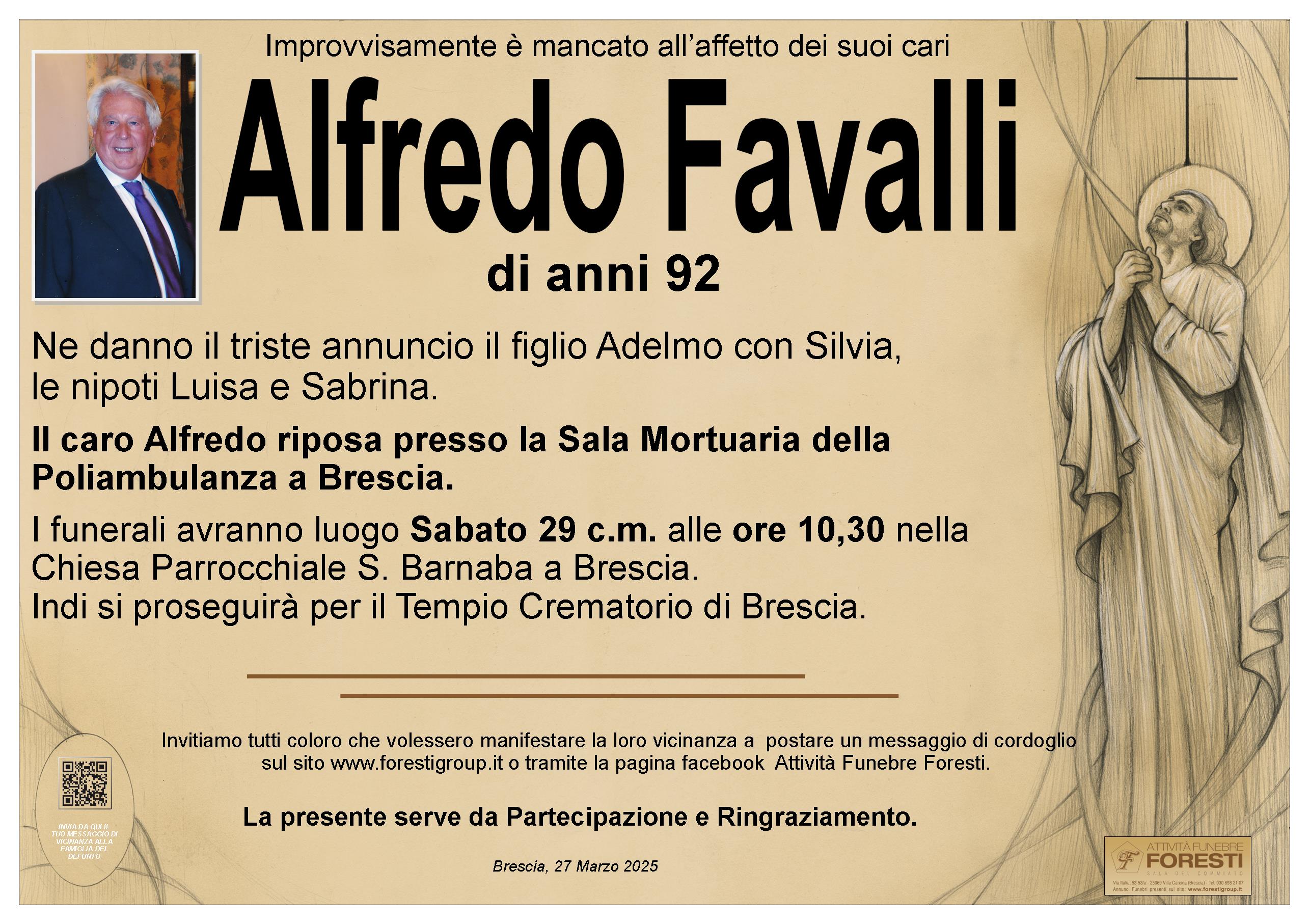 Il caro Alfredo riposa presso la Sala Mortuaria della Poliambulanza a Brescia.