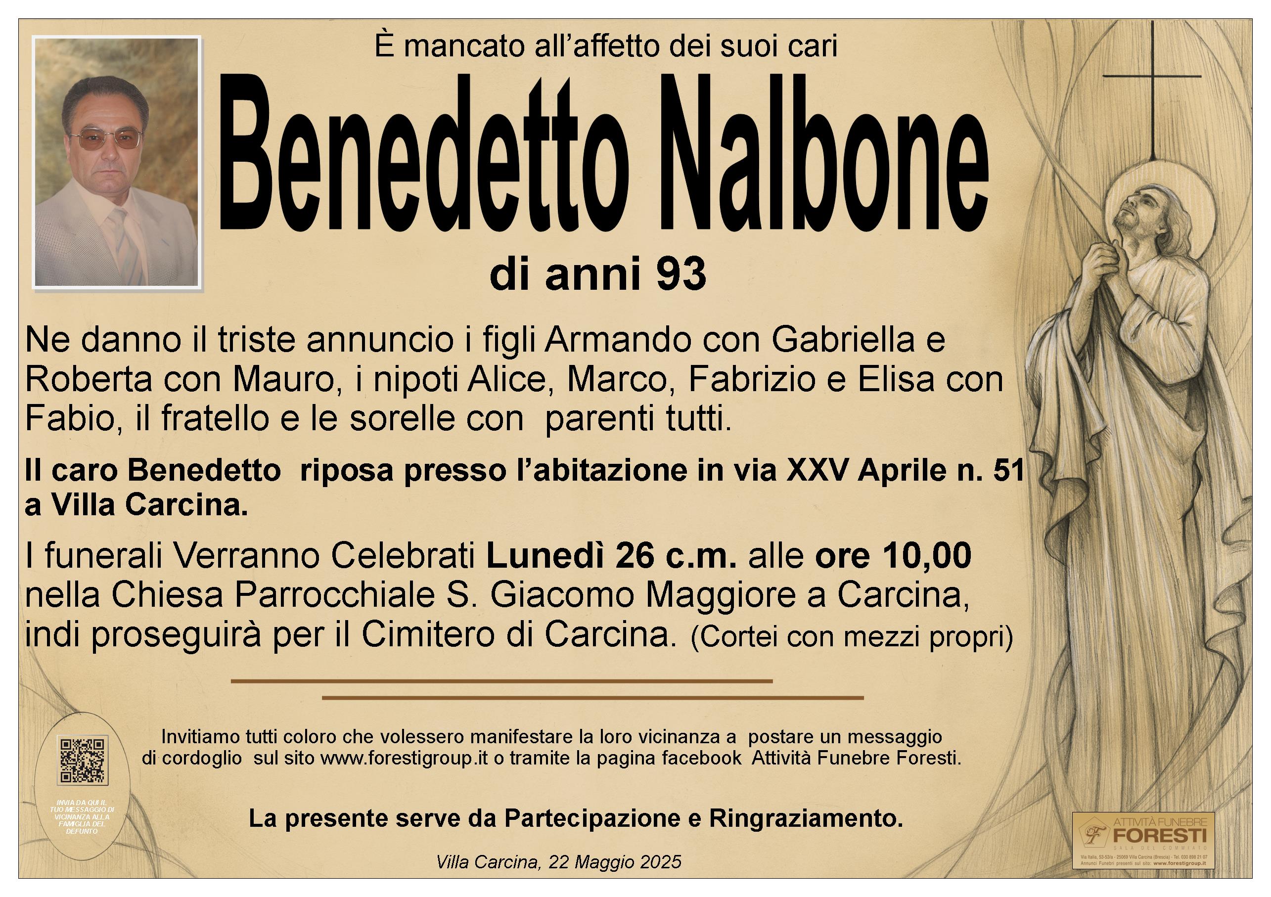 Il caro Benedetto riposa presso l’abitazione in via XXV Aprile n. 51 a Villa Carcina.