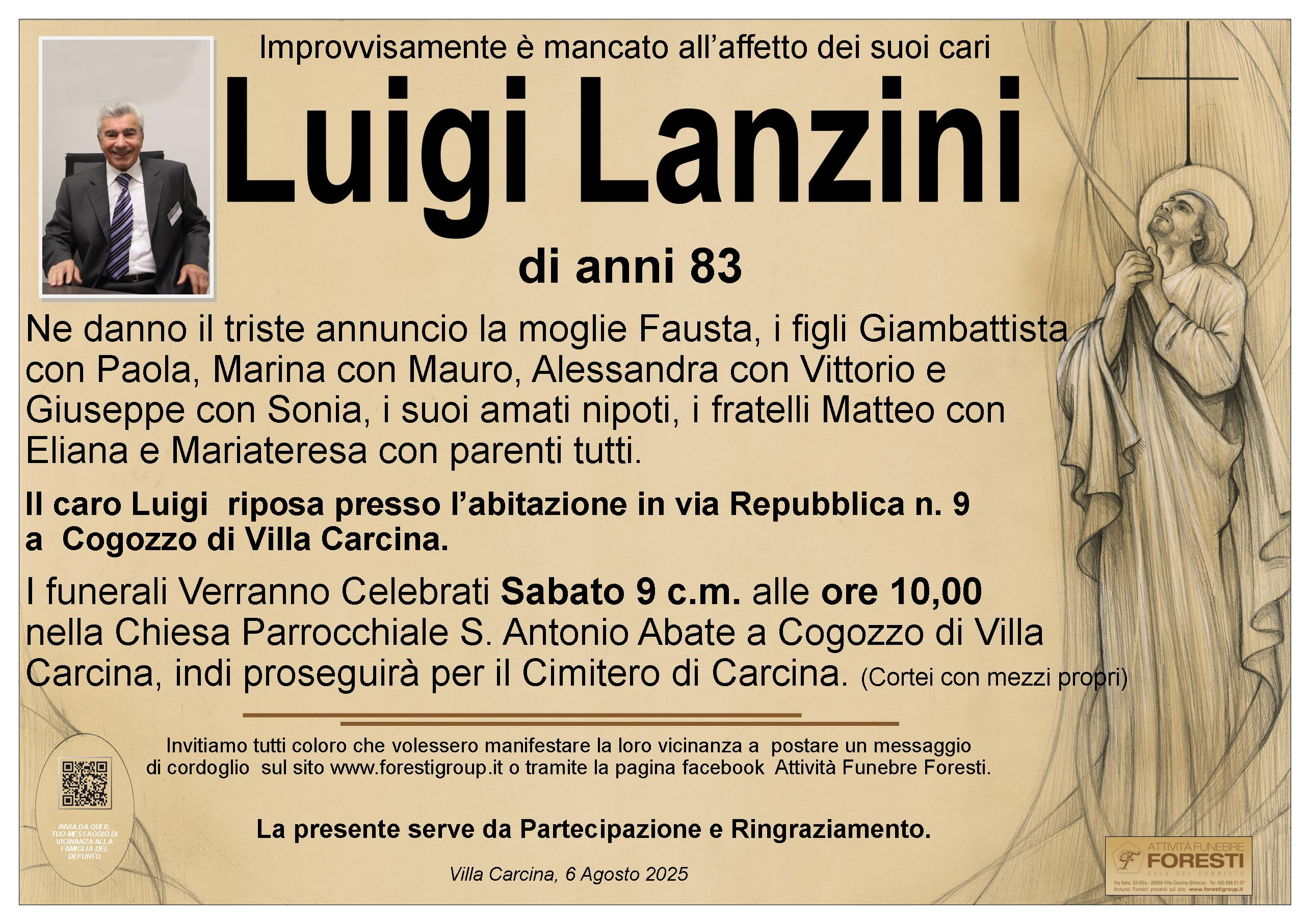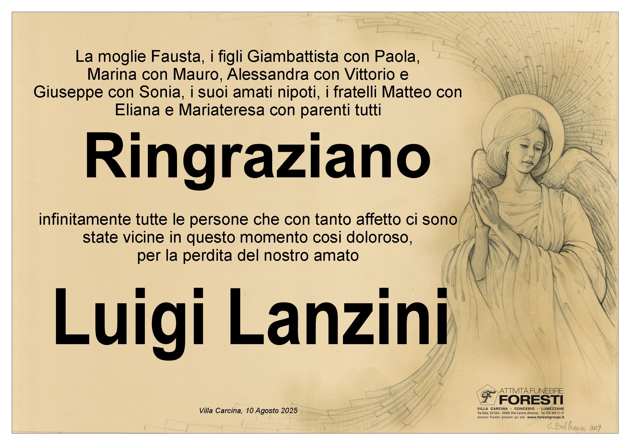 Sentite condoglianze a tutta la famiglia Lanzini per la perdita del signor Luigi. Lo ricorderemo sempre per la professionalità e cortesia.