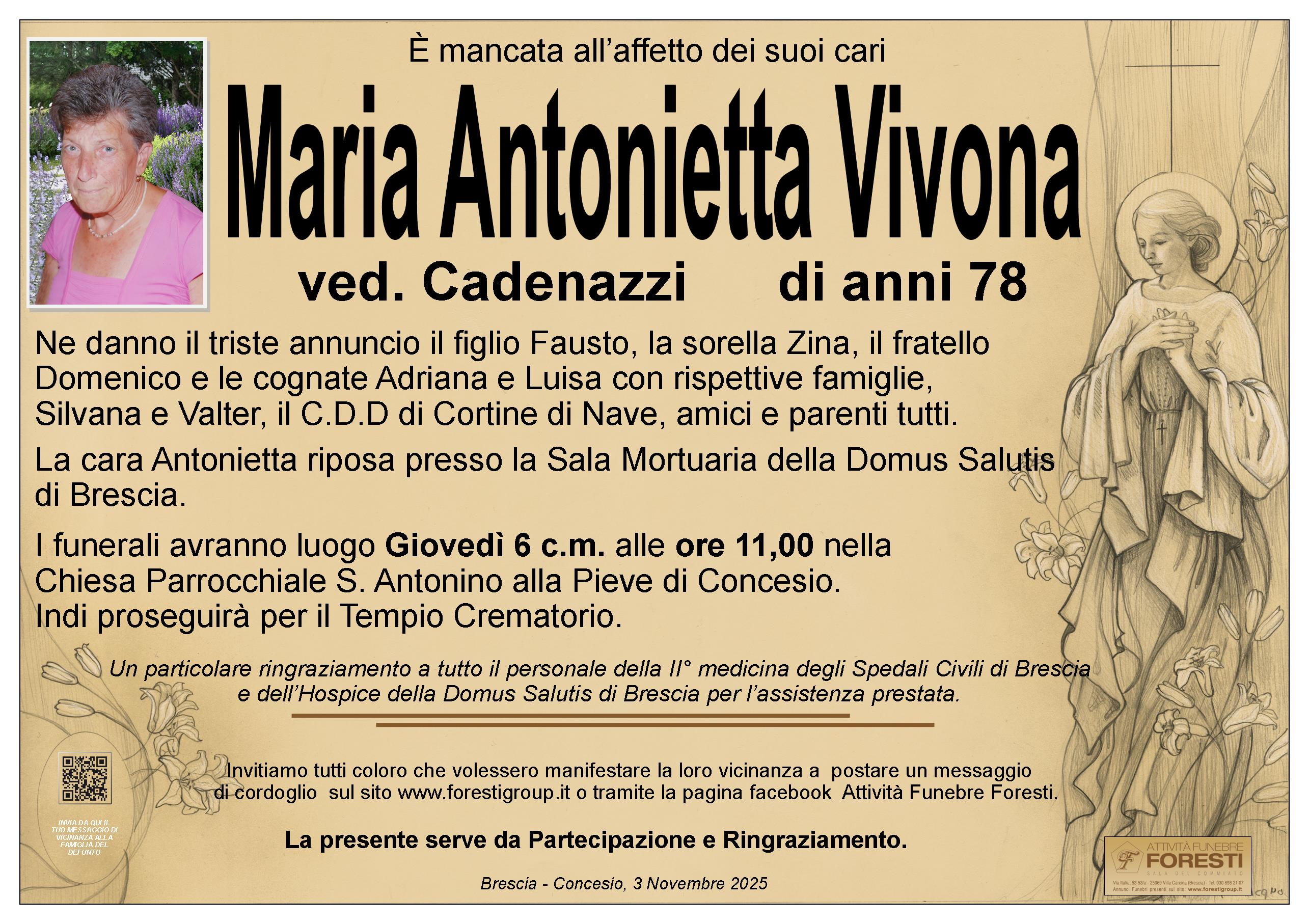 La cara Antonietta riposa presso la Sala Mortuaria della Domus Salutis di Brescia.