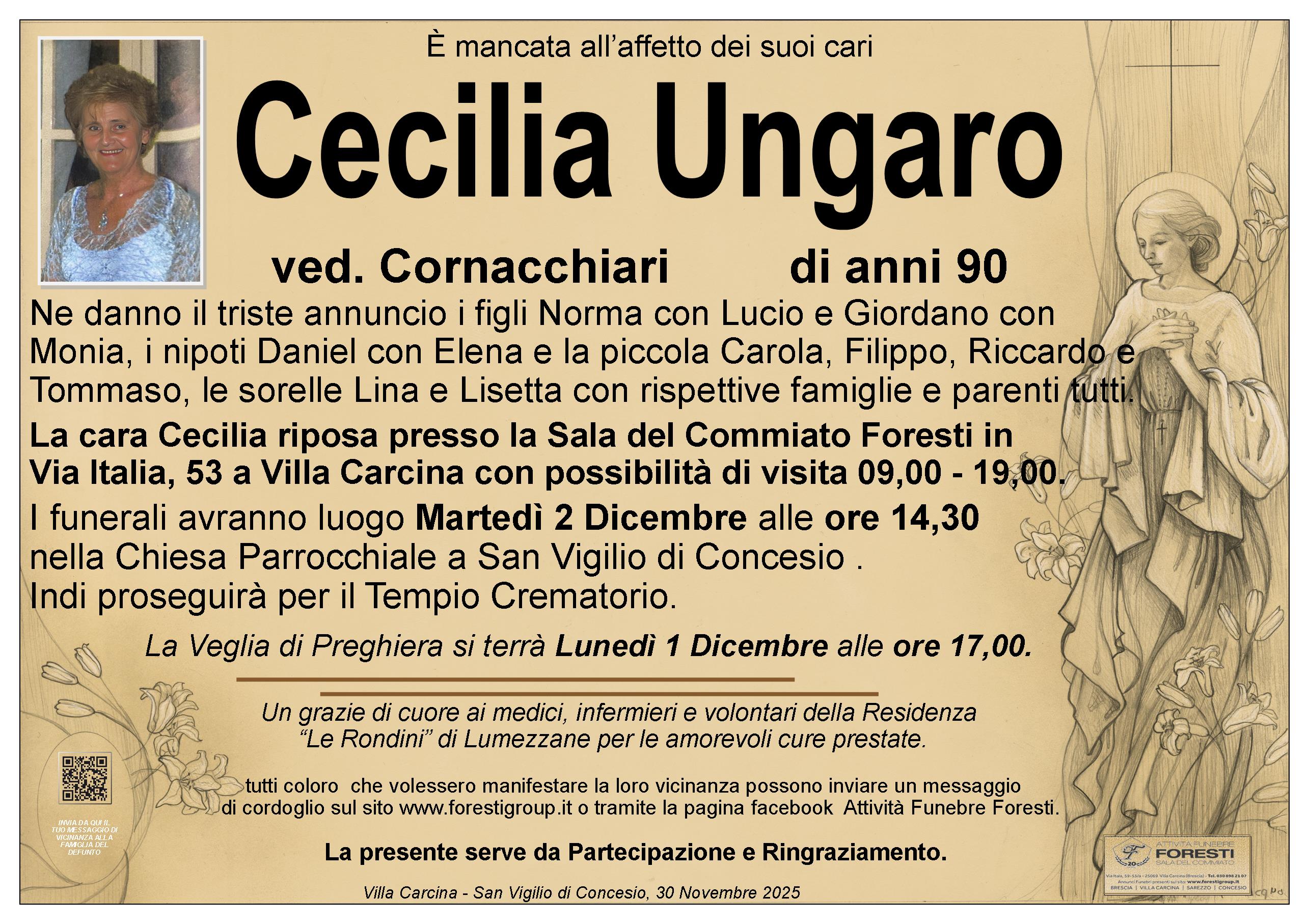 La cara Cecilia riposa presso la Sala del Commiato Foresti in Via Italia, 53 a Villa Carcina con possibilità di visita 09,00 - 19,00.