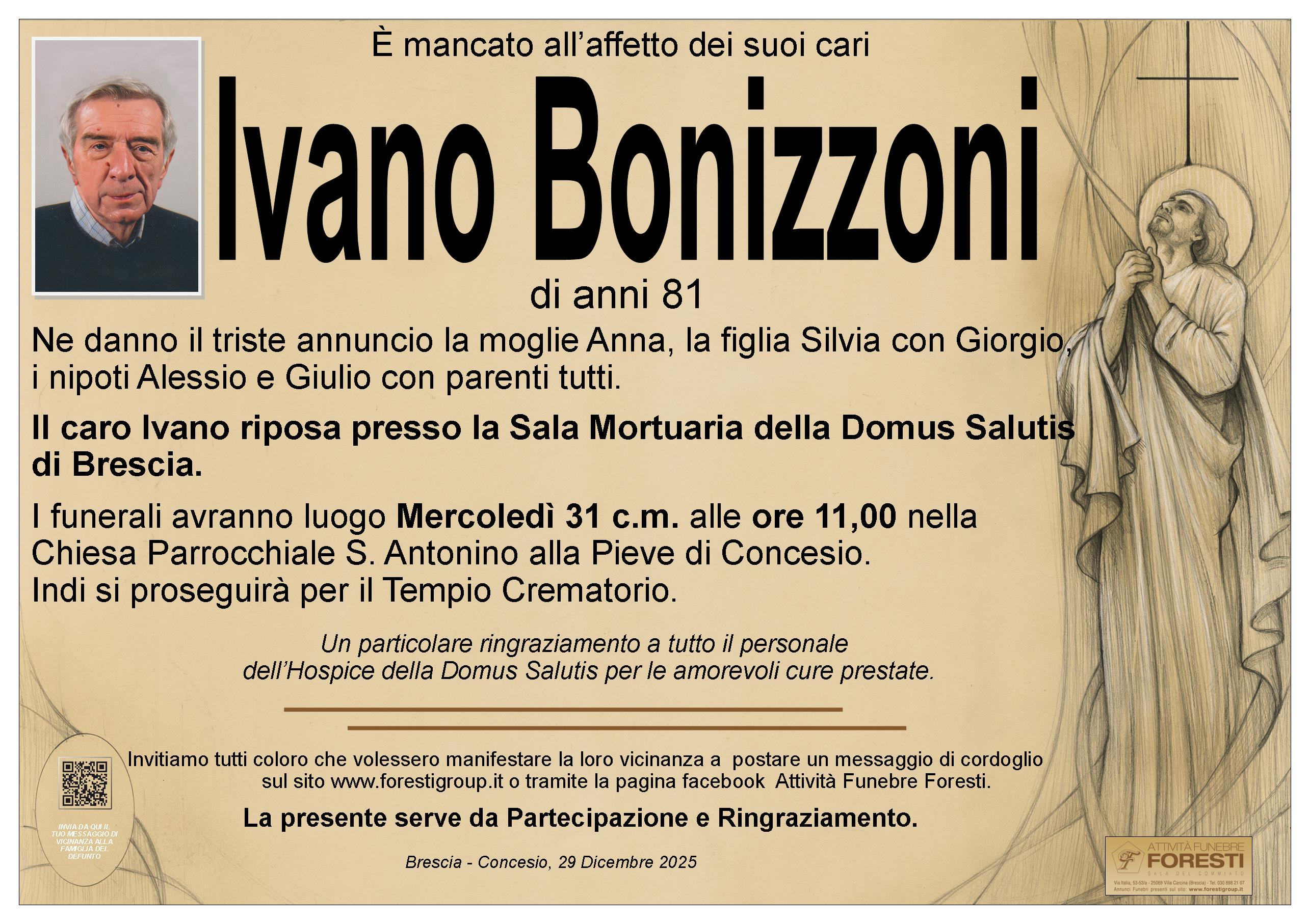 Il caro Ivano riposa presso la Sala Mortuaria della Domus Salutis di Brescia.