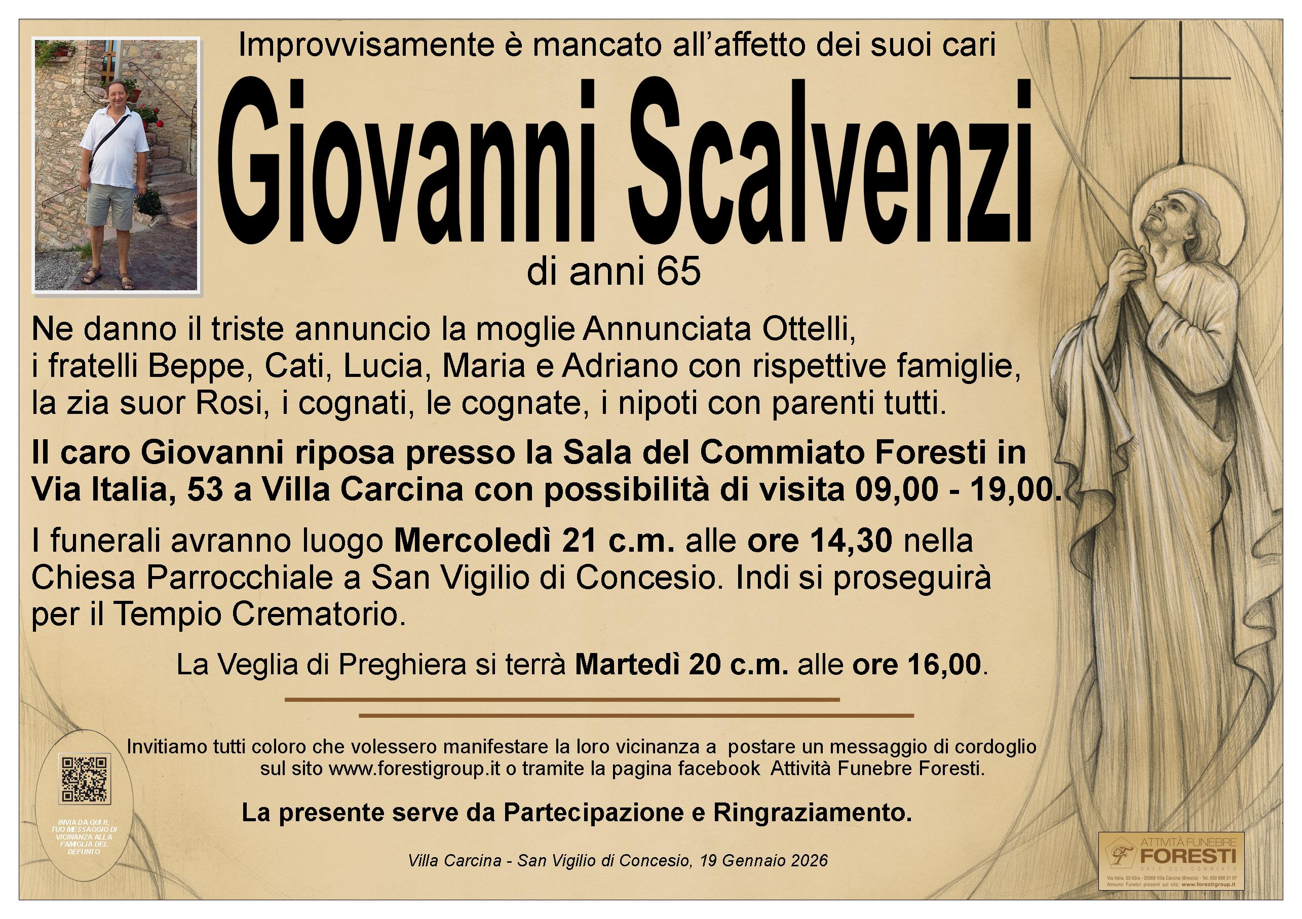 Il caro Giovanni riposa presso la Sala del Commiato Foresti in Via Italia, 53 a Villa Carcina con possibilità di visita 09,00 - 19,00.