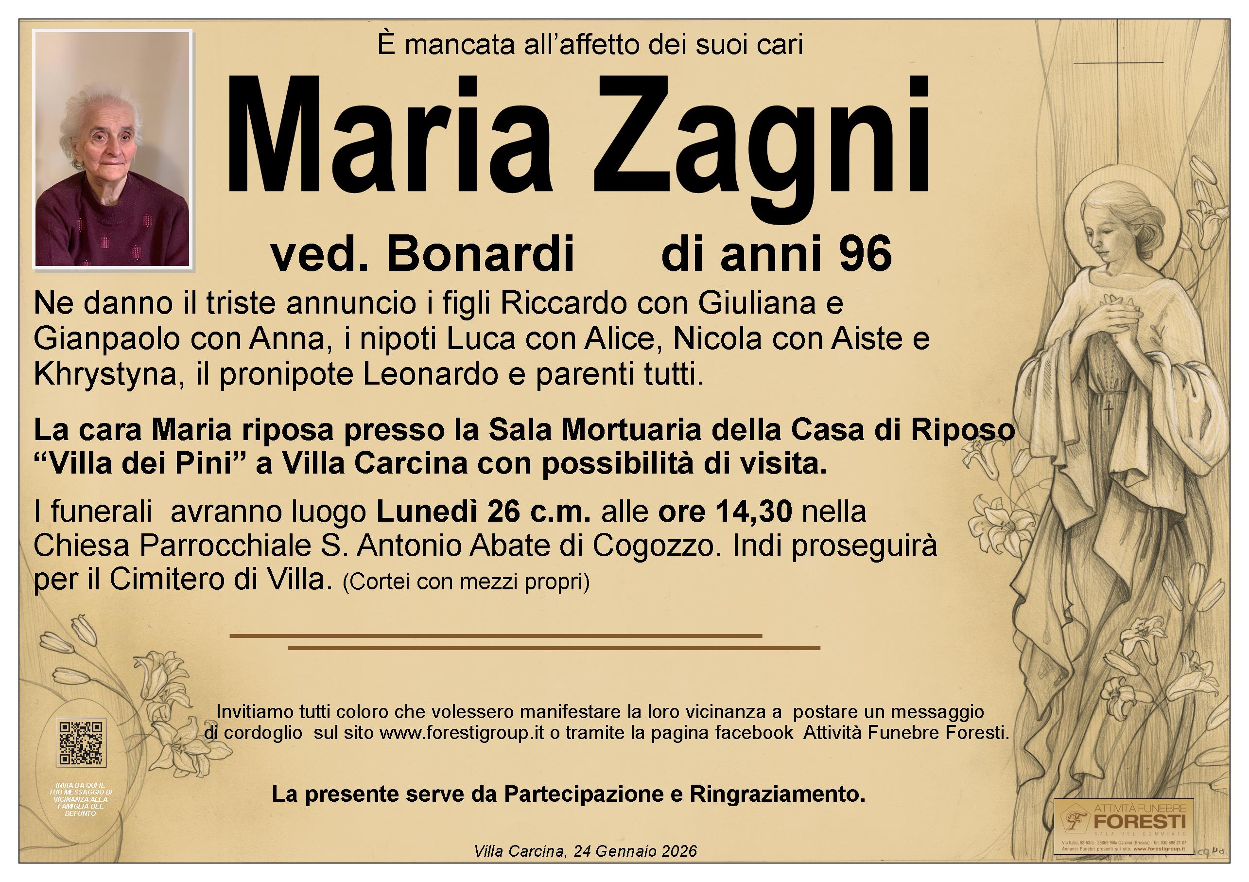 La cara Maria riposa presso la Sala Mortuaria della Casa di Riposo “Villa dei Pini” a Villa Carcina con possibilità di visita.
