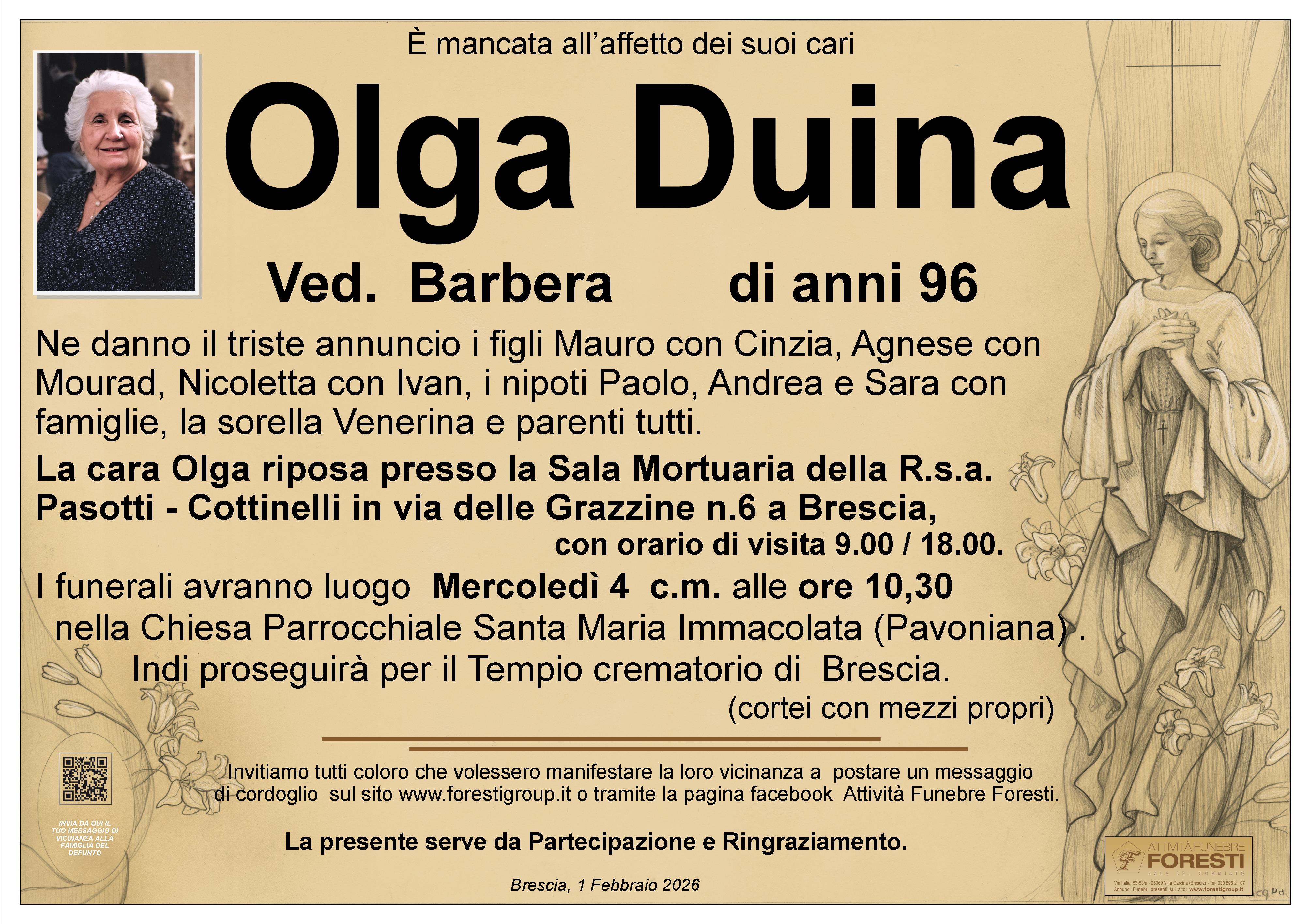 LA CARA OLGA RIPOSA PRESSA LA SALA MORTUARIA DELLA RSA PASOTTI COTTINELLI IN VIA DELLA GRAZZINE N.6 A BRESCIA