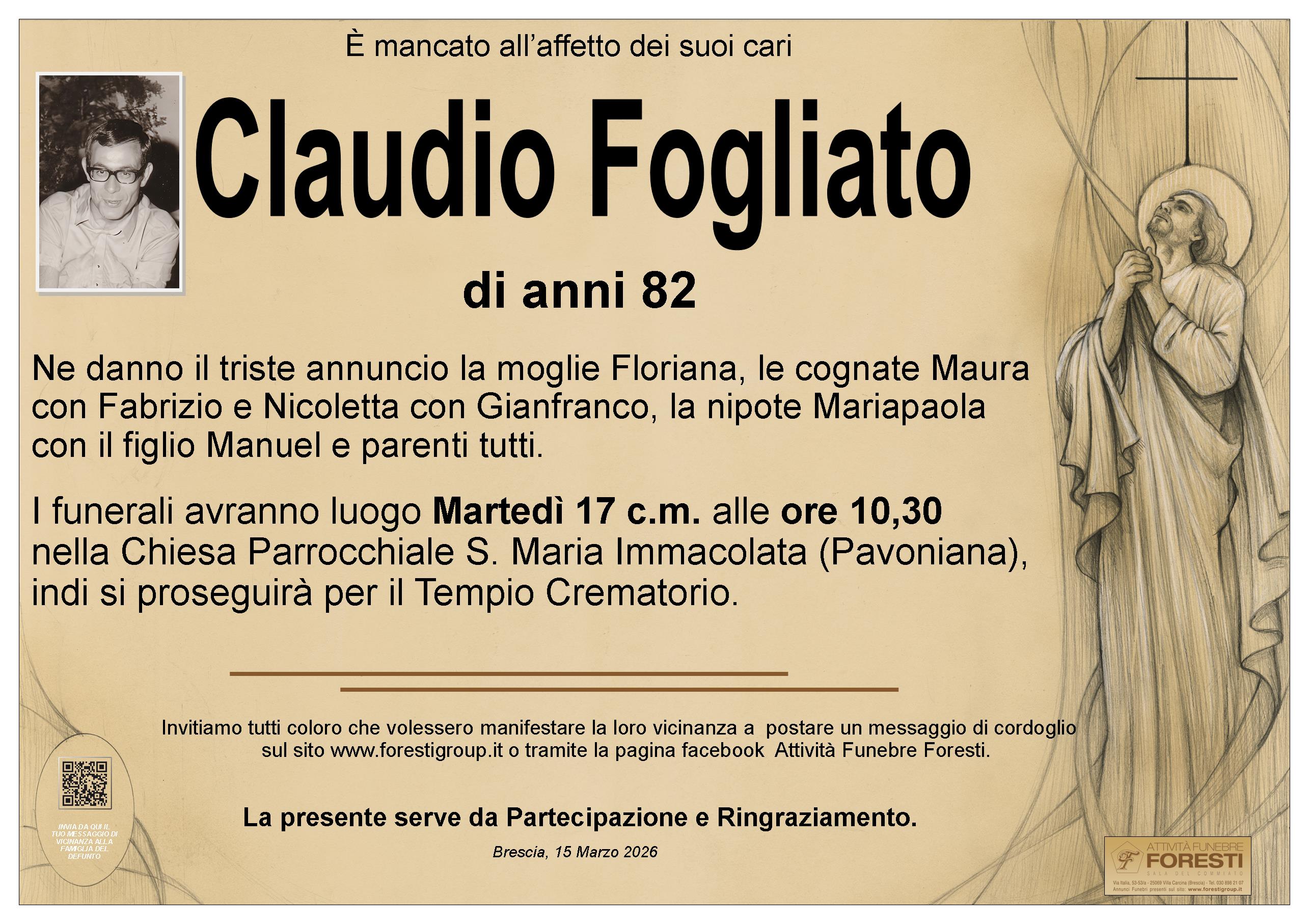 I funerali avranno luogo Martedì 17 c.m. alle ore 10,30 nella Chiesa Parrocchiale S. Maria Immacolata (Pavoniana), indi si proseguirà per il Tempio Crematorio.