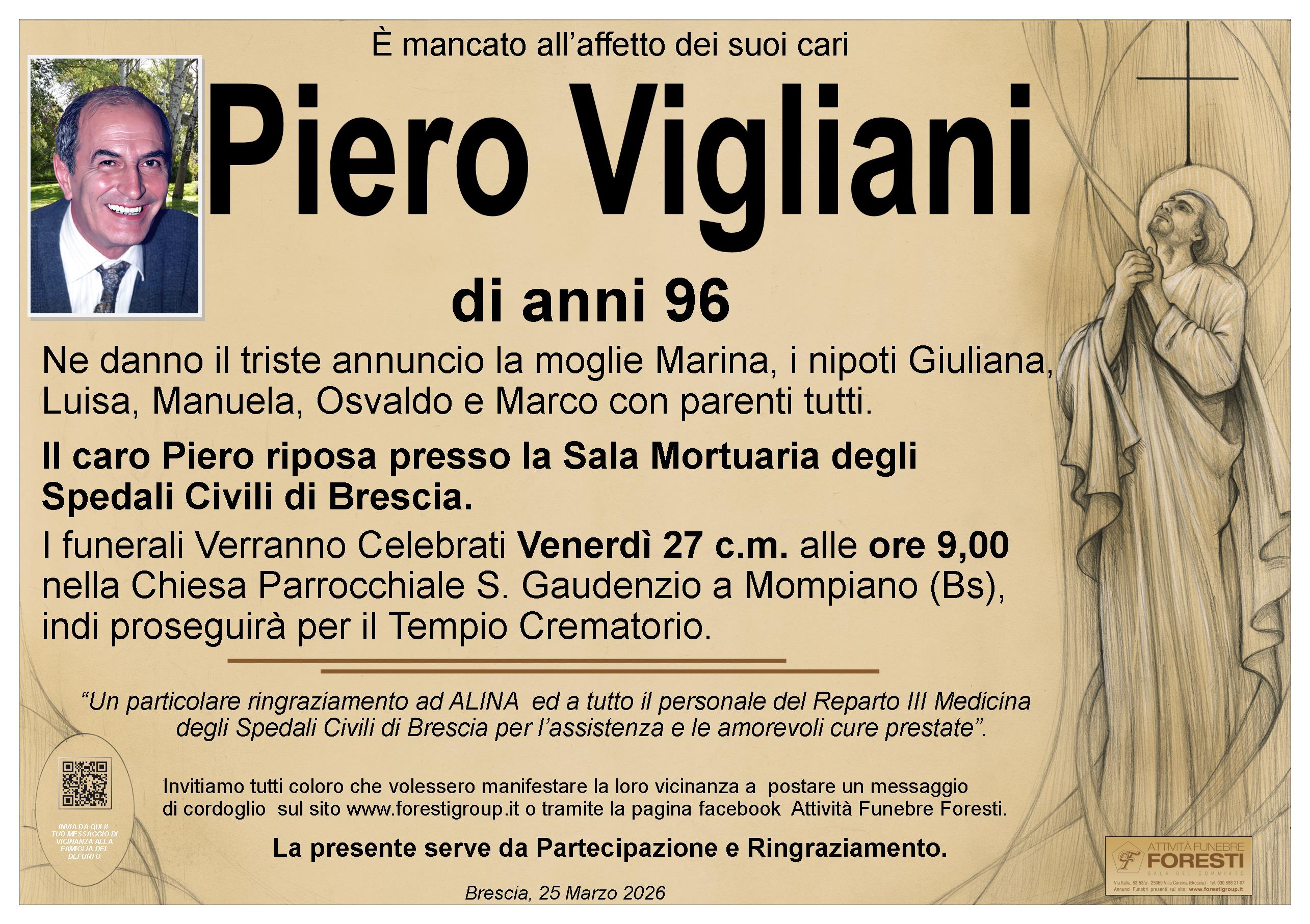 Il caro Piero riposa presso la Sala Mortuaria degli Spedali Civili di Brescia.