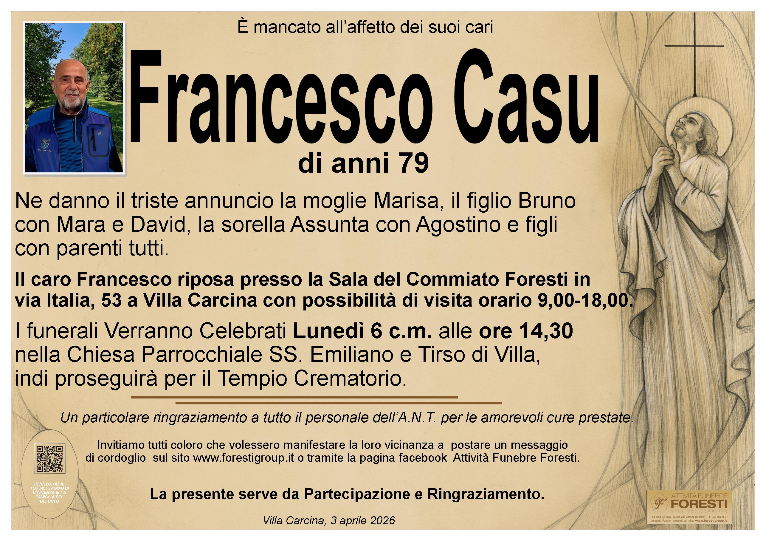 La famiglia Nassini Cesare ,tutta,porge a tutta la famiglia Casu le più sentite condoglianze per la perdita del caro Francesco