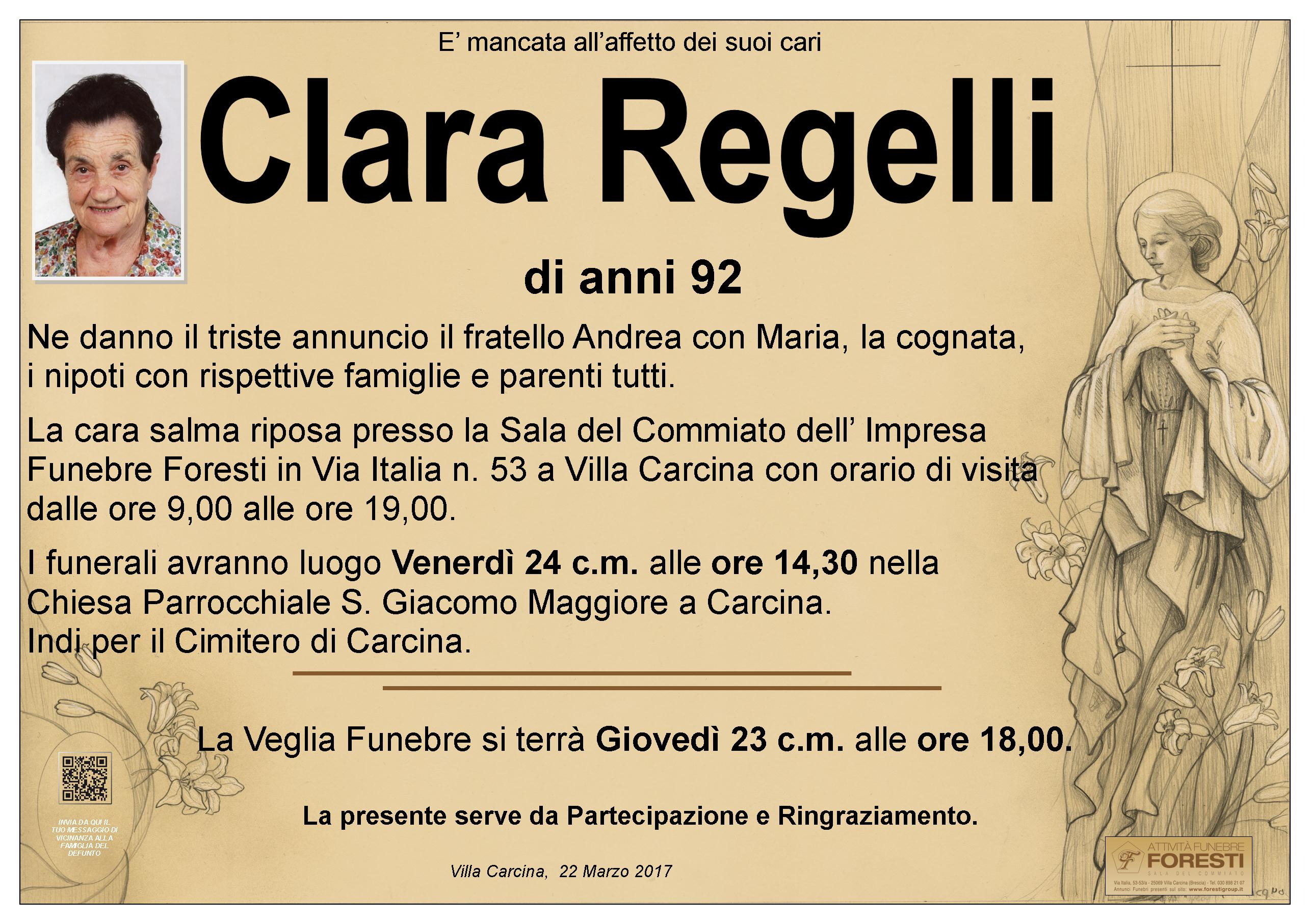LA CARA CLARA RIPOSA PRESSO LA SALA DEL COMMIATO FORESTI CON ORARIO DI VISITA DALLE ORE 9,00 ALLE ORE 19,00.