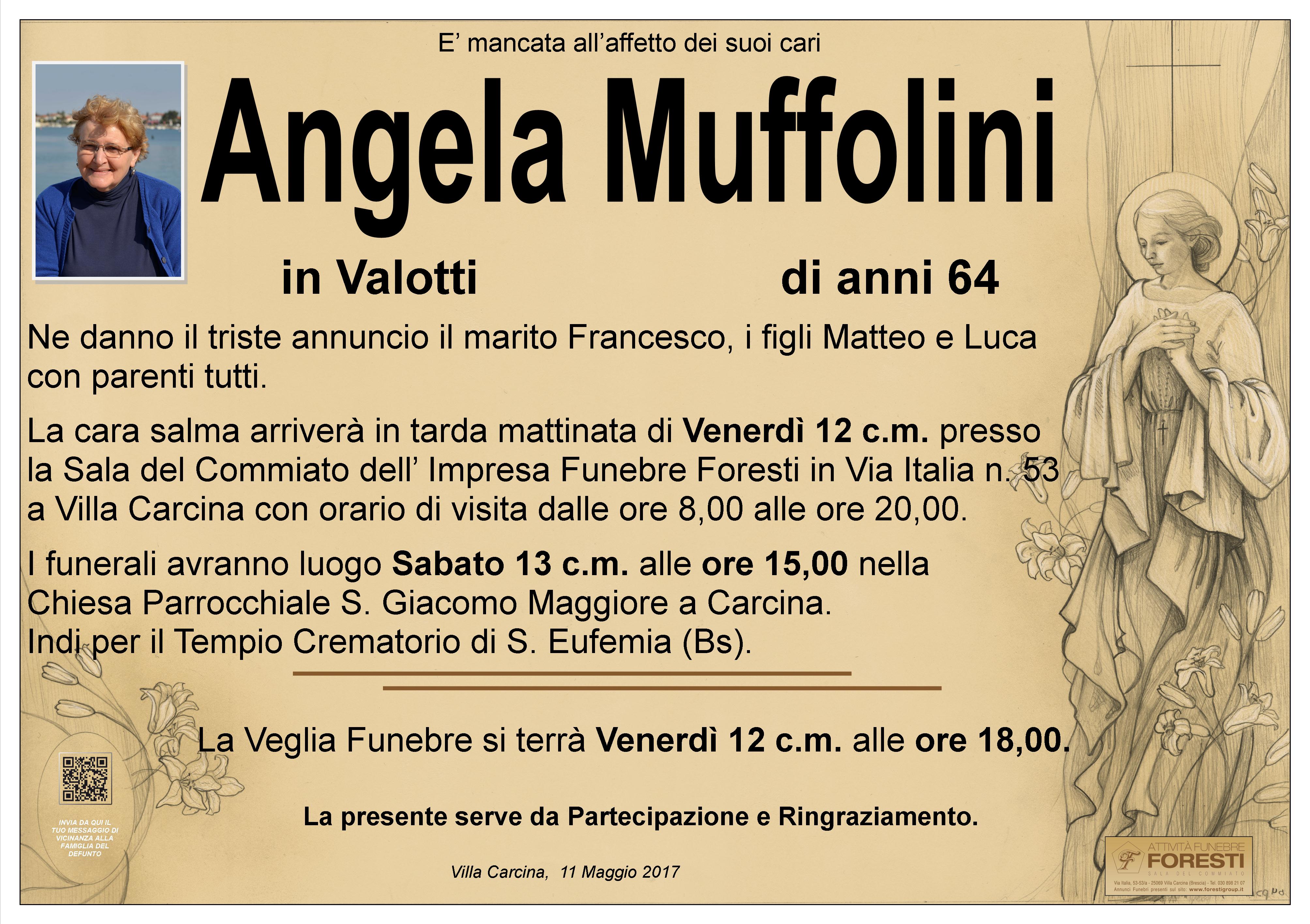 LA CARA ANGELA ARRIVERA' IN TARDA MATTINATA DI VENERDI' 12 C.M. PRESSO LA SALA DEL COMMIATO DELL'IMPRESA FONEBRE FORESTI CON ORARIO DI VISITA DALLE ORE 8,00 ALLE ORE 20,00.