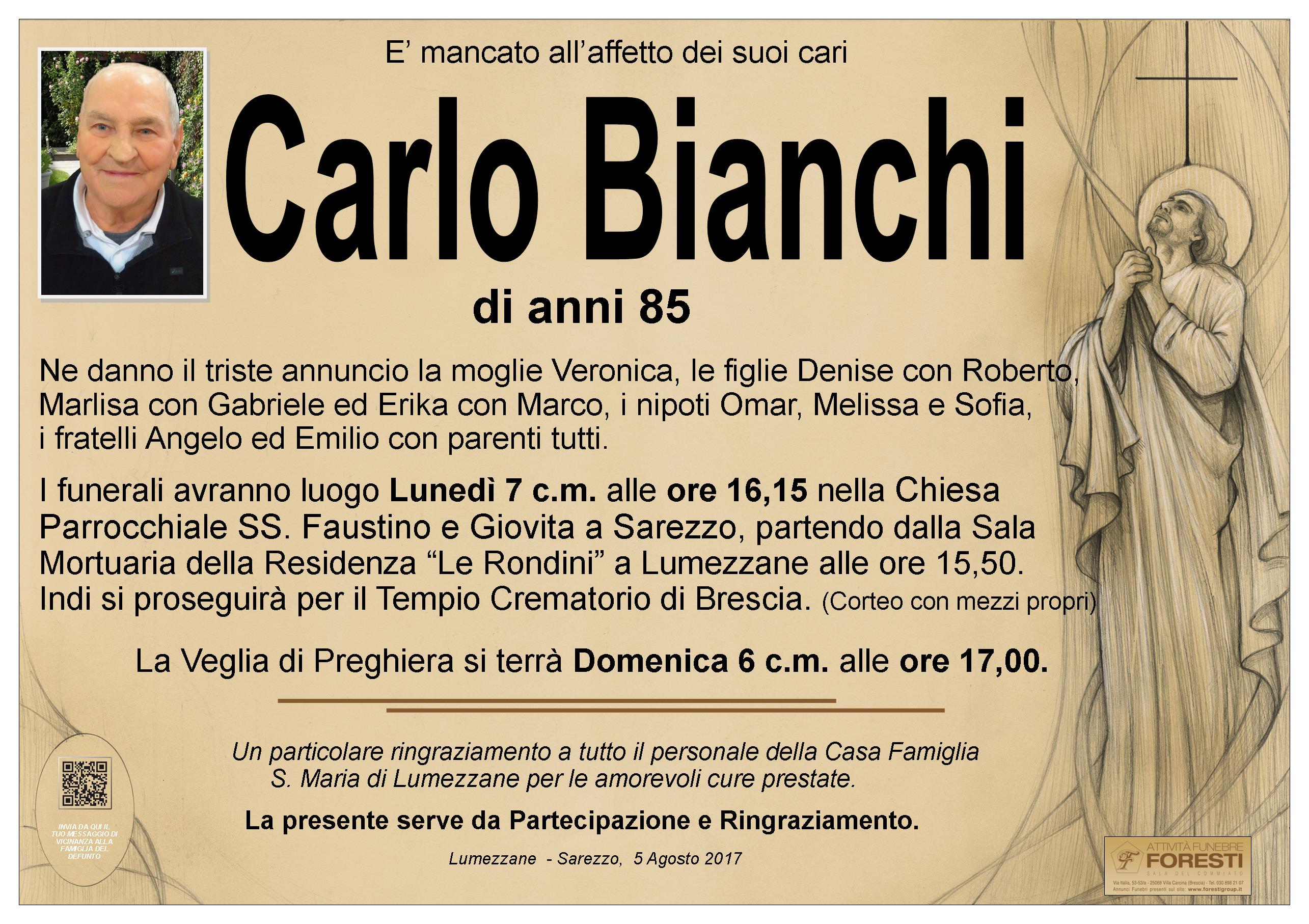 I FUNERALI AVRANNO LUOGO NELLA CHIESA PARROCCHIALE SS.FAUSTINO E GIOVITA DI SAREZZO  LUNEDI'  7 C.M. ALLE ORE 16.15.