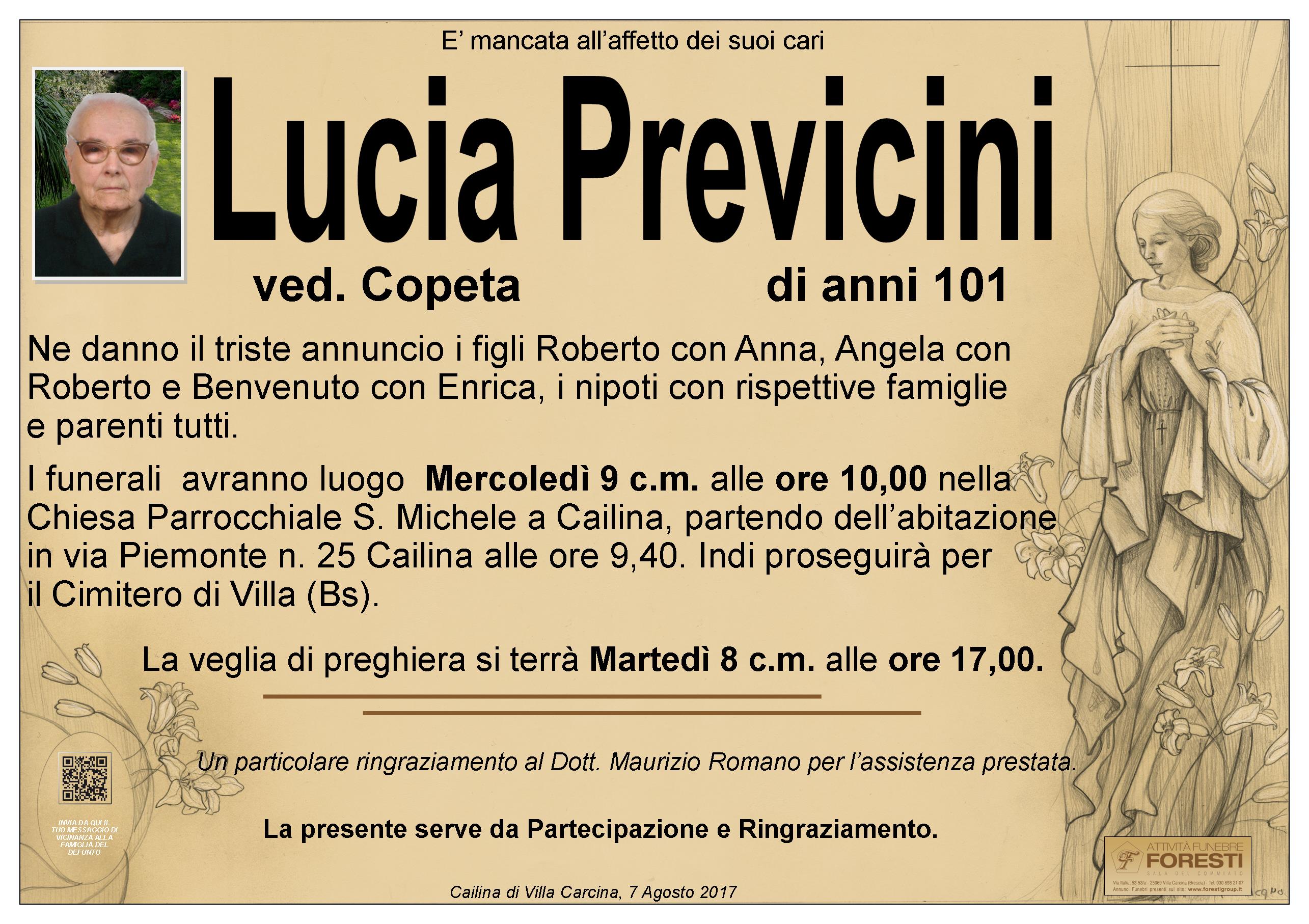 LA CARA LUCIA RIPOSA PRESSO L'ABITAZIONE IN VIA PIEMONTE N. 25 A CAILINA.