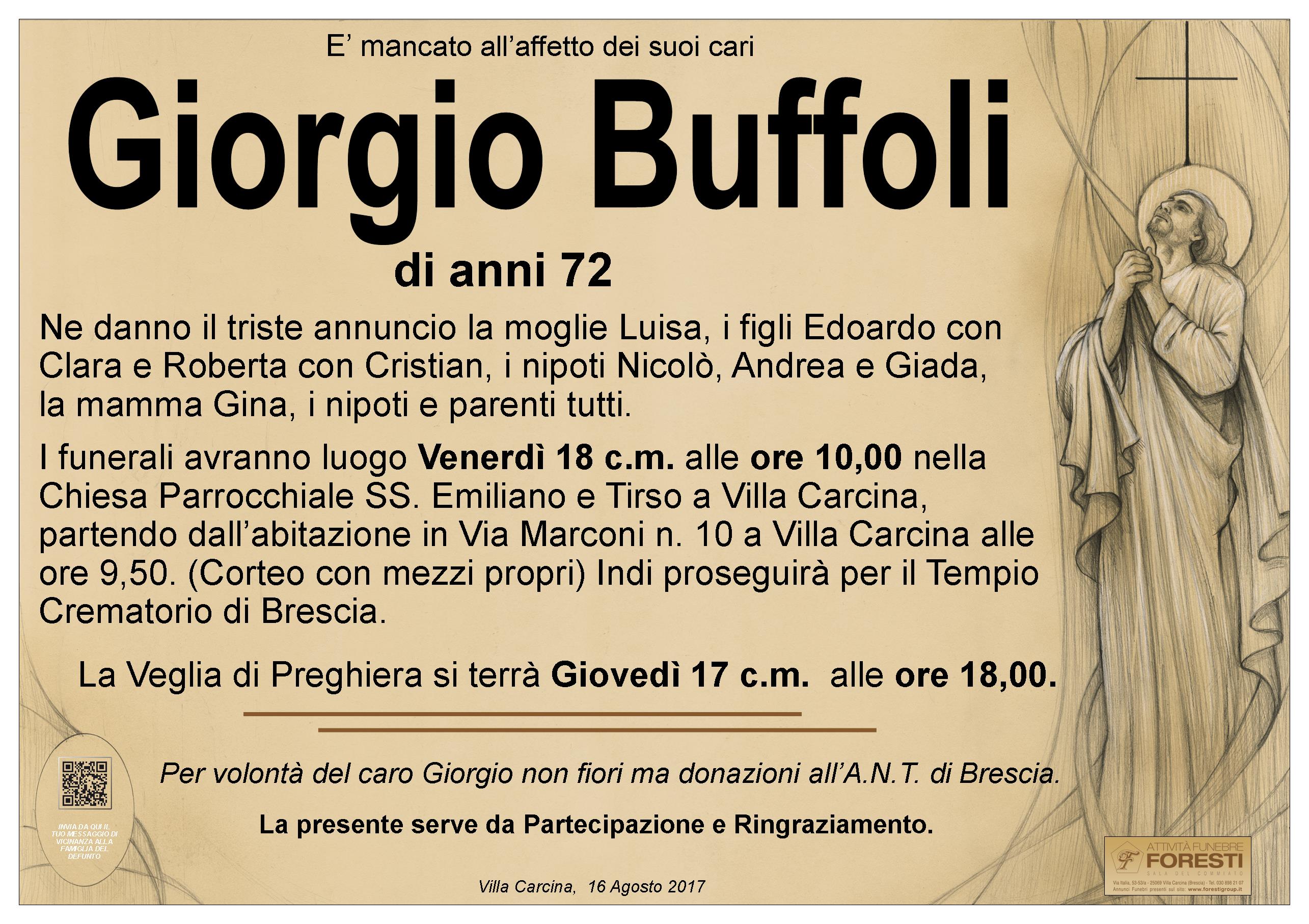 Il Presidente della sezione AVIS di Villa Carcina, il Consiglio Direttivo e tutti i donatori sono vicini alla famiglia nel ricordo del Consigliere Giorgio Buffoli, instancabile collaboratore e carissimo amico, esempio di altruismo e generosità.