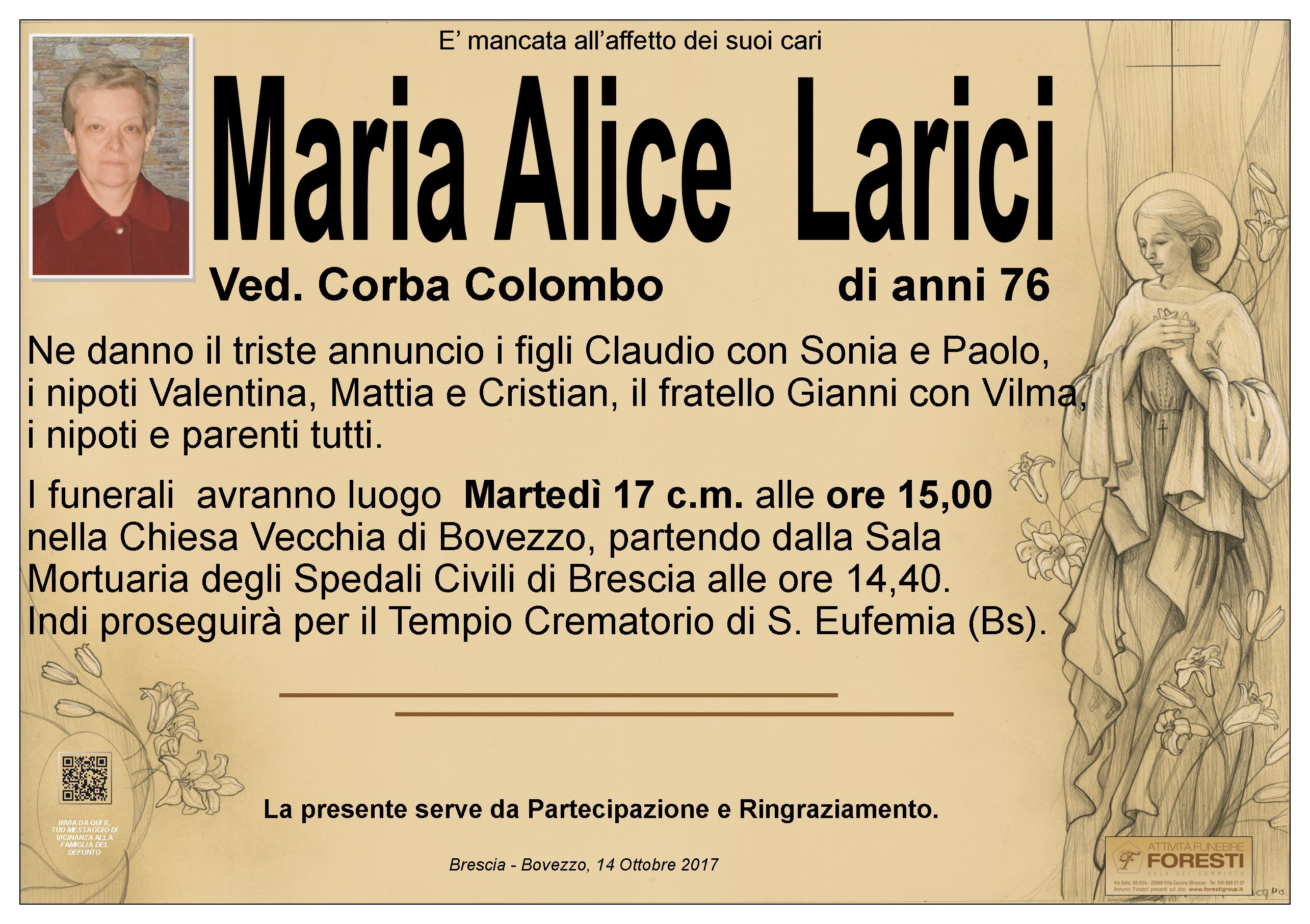LA CARA MARIA ALICE RIPOSA PRESSO LA SALA MORTUARIA DEGLI SPEDALI CIVILI DI BRESCIA.