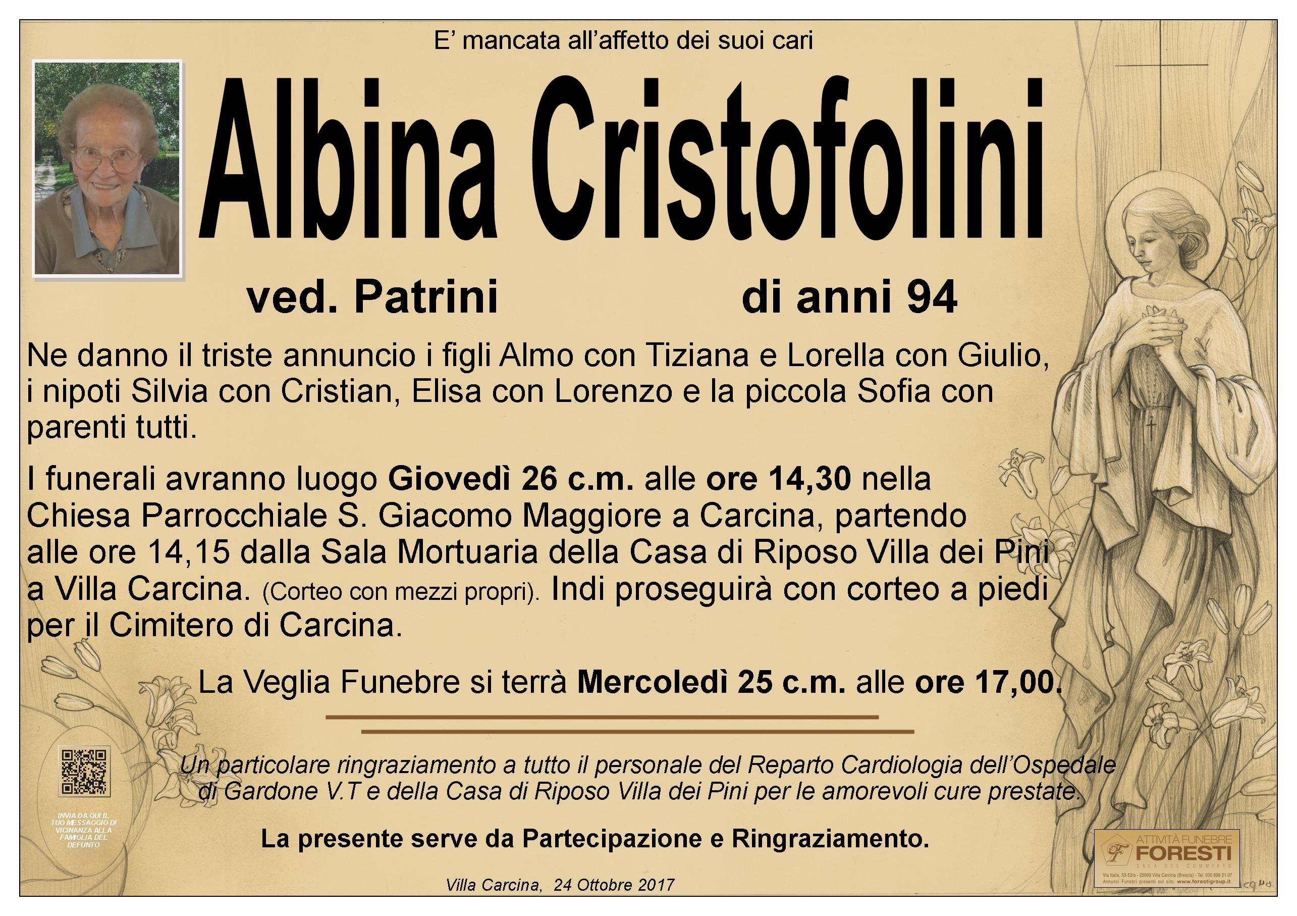I FUNERALI AVRANNO LUOGO NELLA CHIESA PARROCCHIALE S. GIACOMO MAGGIORE A CARCINA GIOVEDI' 26 C.M. ALLE ORE 14,30.