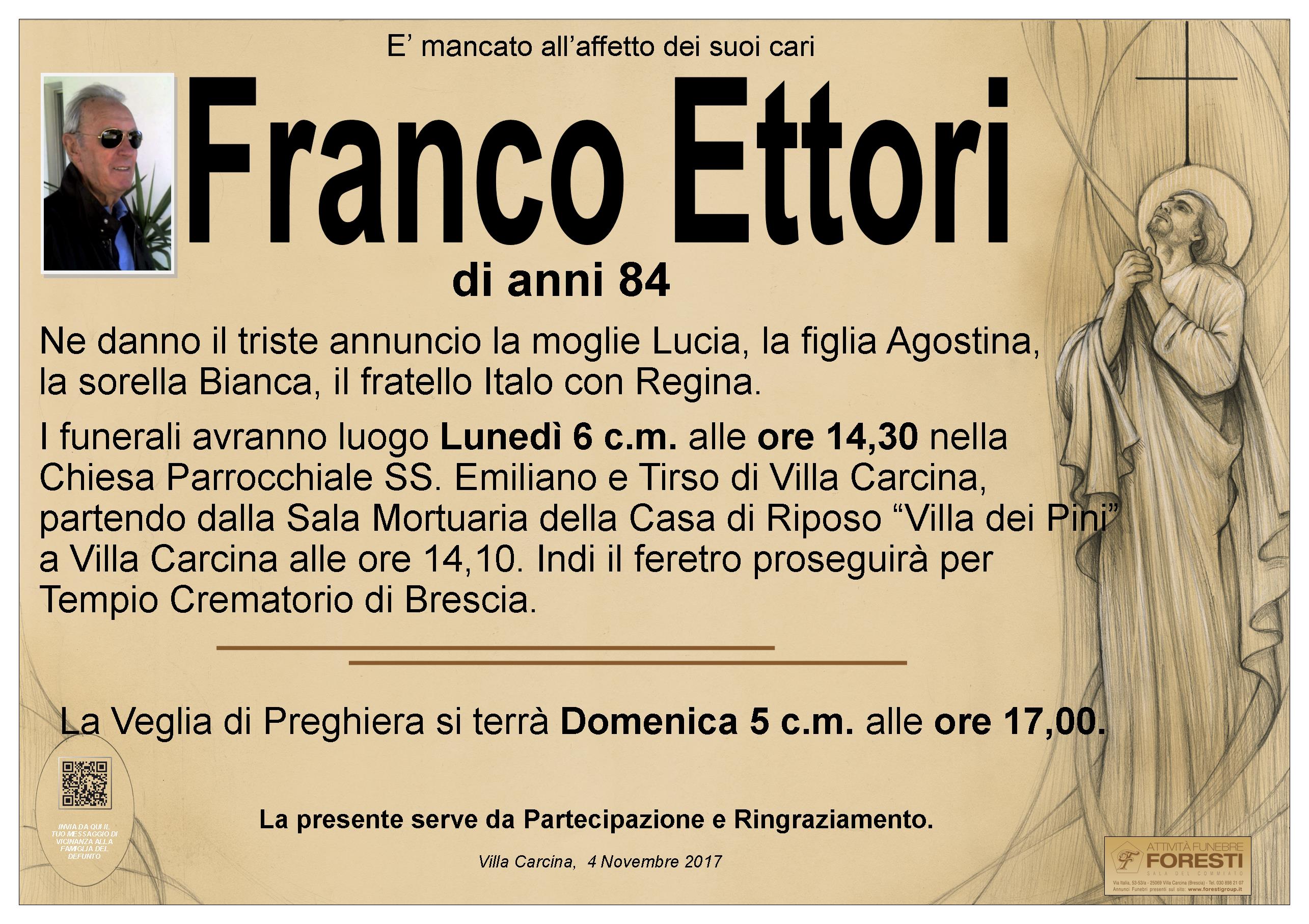 I FUNERALI AVRANNO LUOGO NELLA CHIESA PARROCCHIALE SS. EMILIANO E TIRSO DI VILLA CARCINA LUNEDI' 6 C.M. ALLE ORE 14,30.