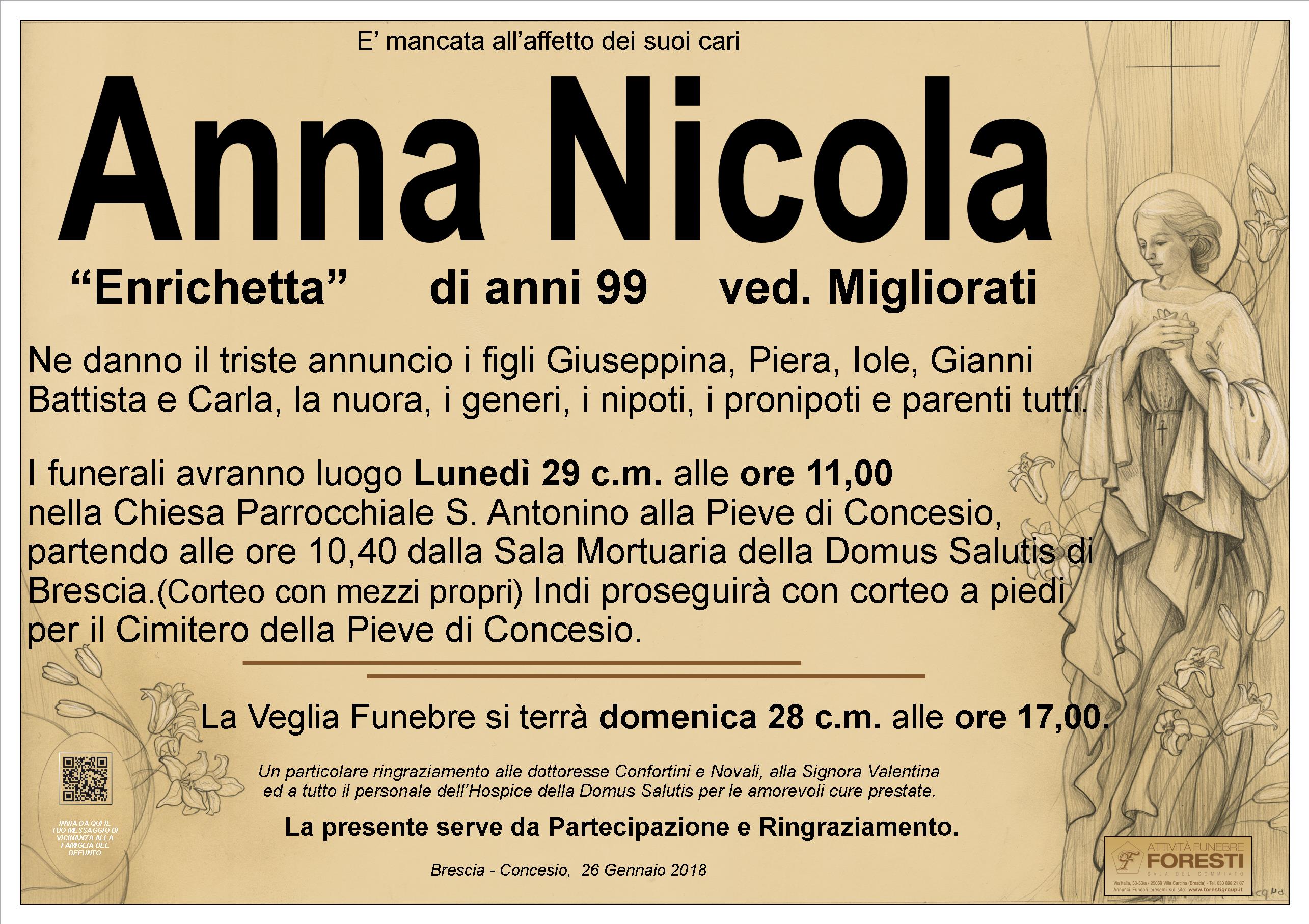 LA CARA ANNA RIPOSA PRESSO LA SALA MORTUARIA DELLA DOMUS SALUTIS A BRESCIA CON ORARIO DI VISITA CONTINUATO DALLE ORE 8,00 ALLE ORE 18,00.