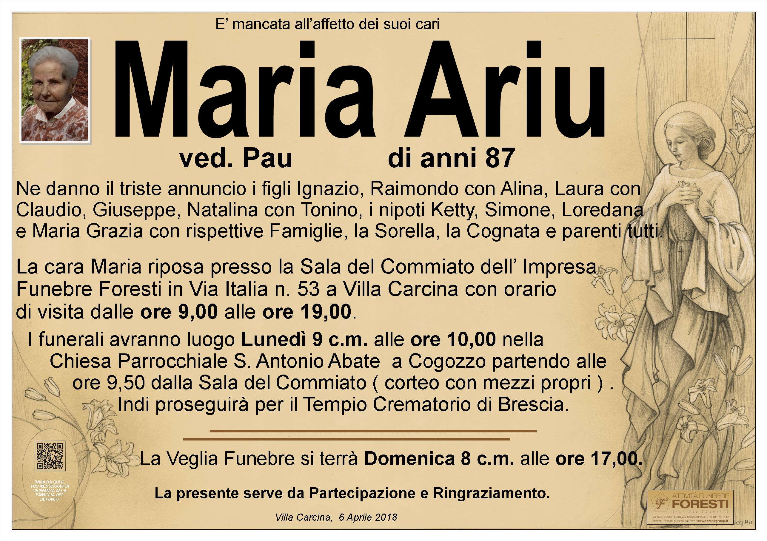 LA CARA MARIA RIPOSA PRESSO LA SALA DEL COMMIATO DELL'IMPRESA FUNEBRE FORESTI CON ORARIO DI VISITA CONTINUATO DALLE ORE 9 ALLE ORE 19.