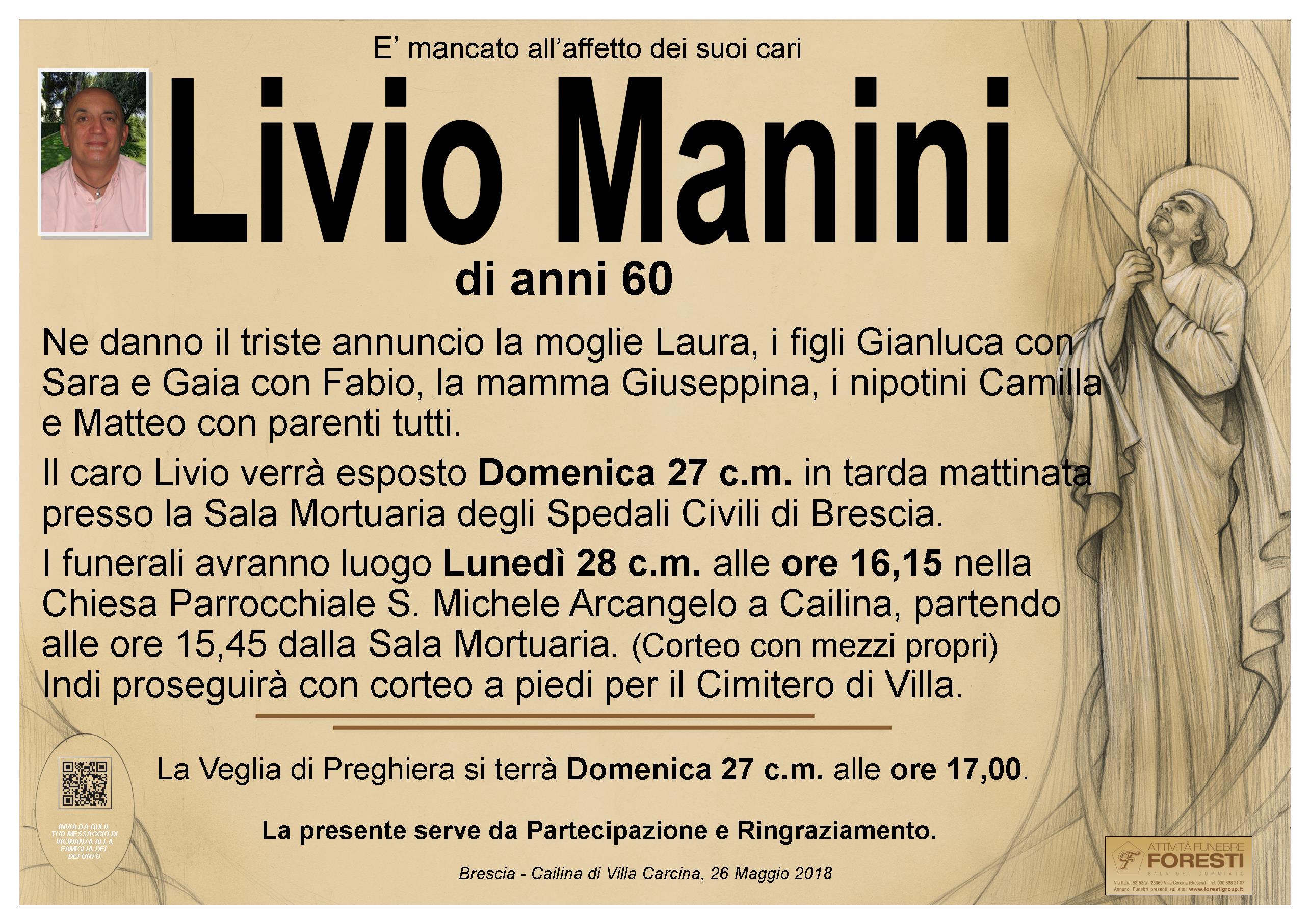 IL CARO LIVIO VERRA' ESPOSTO DOMENICA 27 C.M. IN TARDA MATTINATA PRESSO LA SALA MORTUARIA DEGLI SPEDALI CIVILI DI BRESCIA.