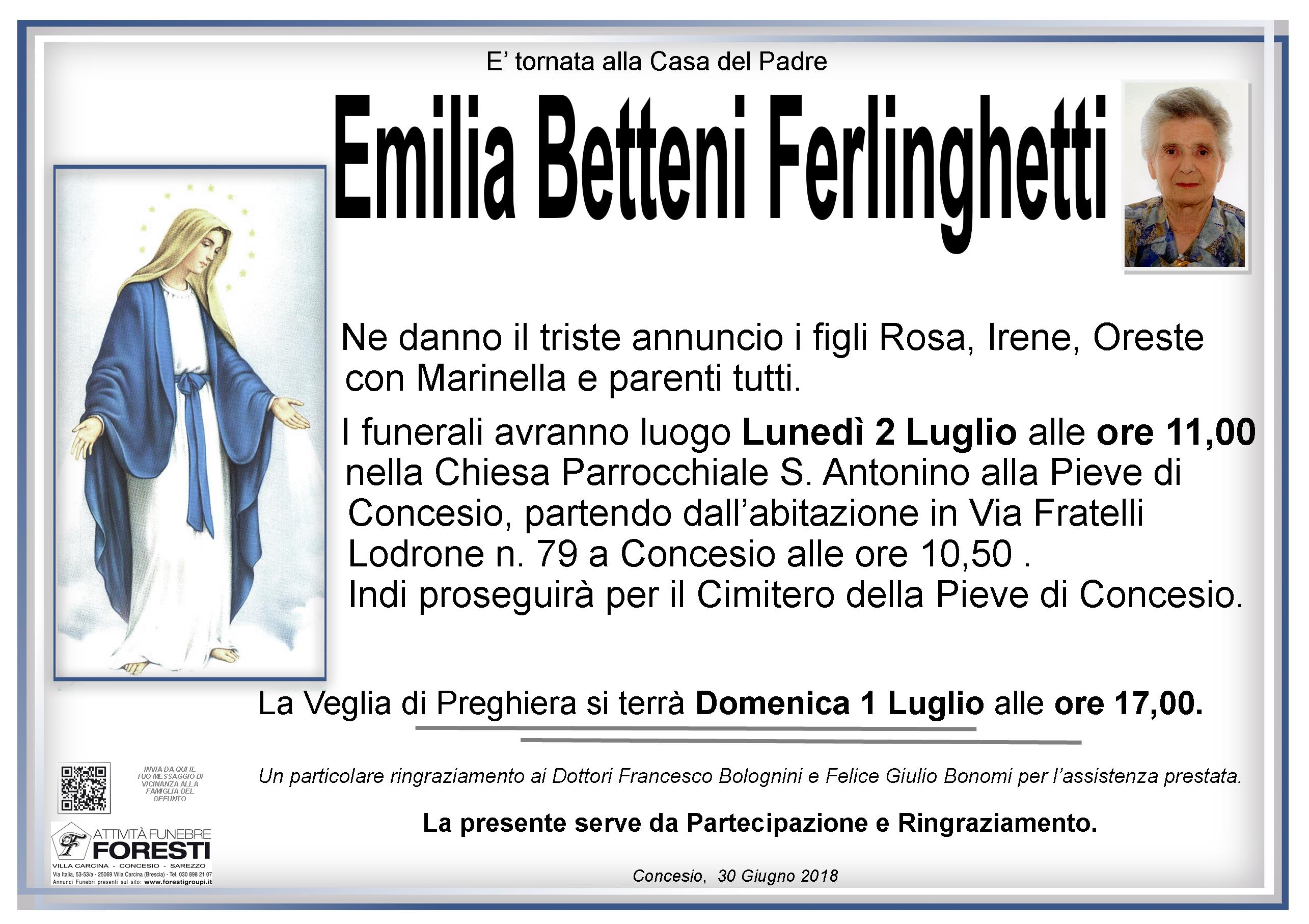 I FUNERALI AVRANNO LUOGO NELLA CHIESA PARROCCHIALE S. ANTONINO ALLA PIEVE DI CONCESIO LUNEDI' 2 LUGLIO ALLE ORE 11,00.
