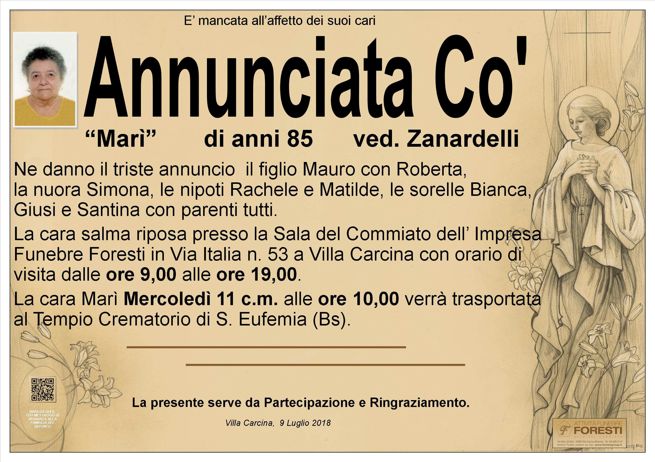 LA CARA MARI' RIPOSA PRESSO LA SALA DEL COMMIATO DELL'IMPRESA FUNEBRE FORESTI CON ORARIO DI VISITA CONTINUATO DALLE ORE 9,00 ALLE ORE 19,00, MERCOLEDI' 11 C.M.  ALLE ORE 10,00 VERRA' TRASPORTATA AL TEMPIO CREMATORIO DI BRESCIA.
