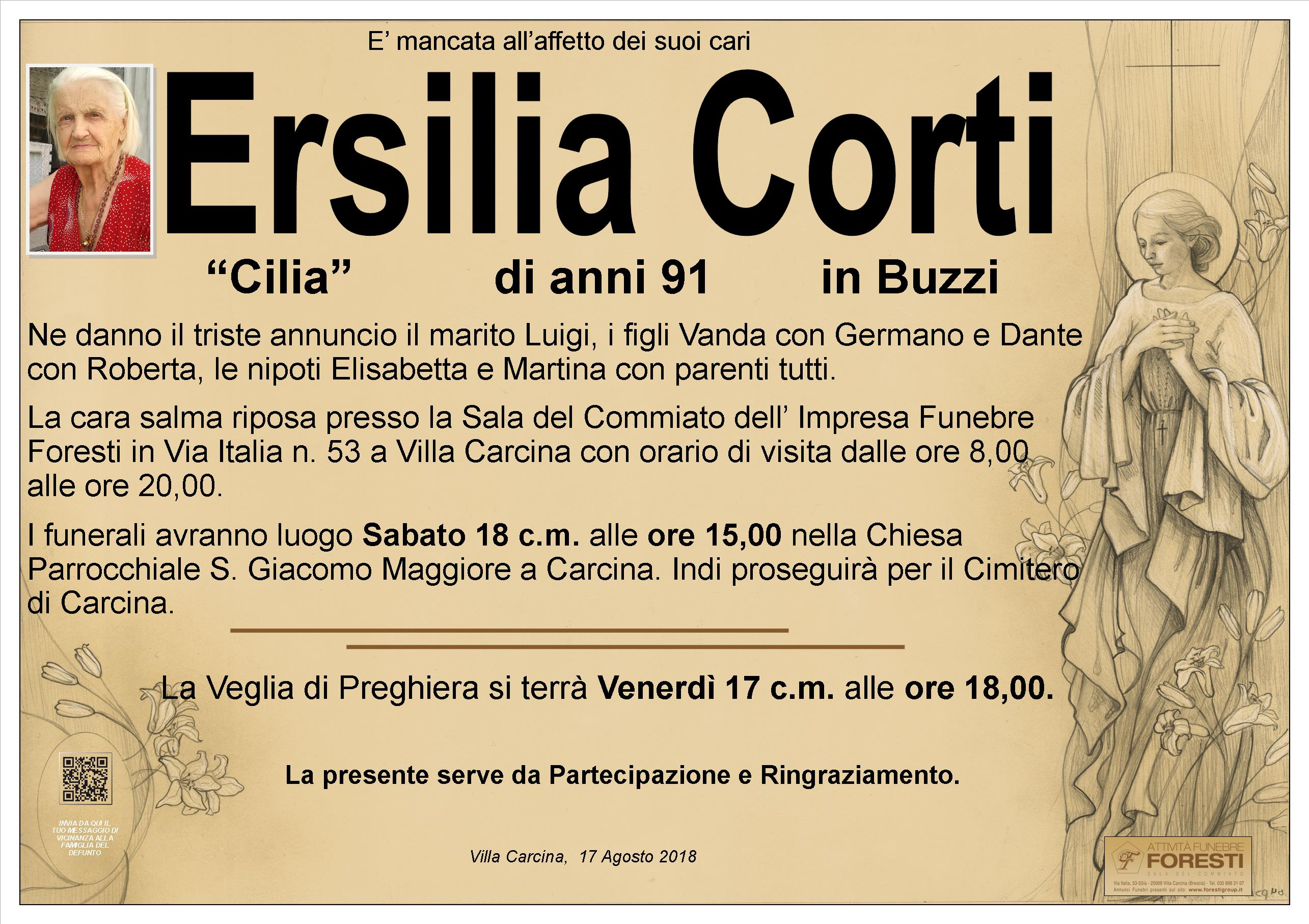 LA CARA ERSILIA RIPOSA PRESSO LA SALA DEL COMMIATO DELL'IMPRESA FUNEBRE FORESTI CON ORARIO DI VISITA CONTINUATO DALLE ORE 8,00 ALLE ORE 20,00.