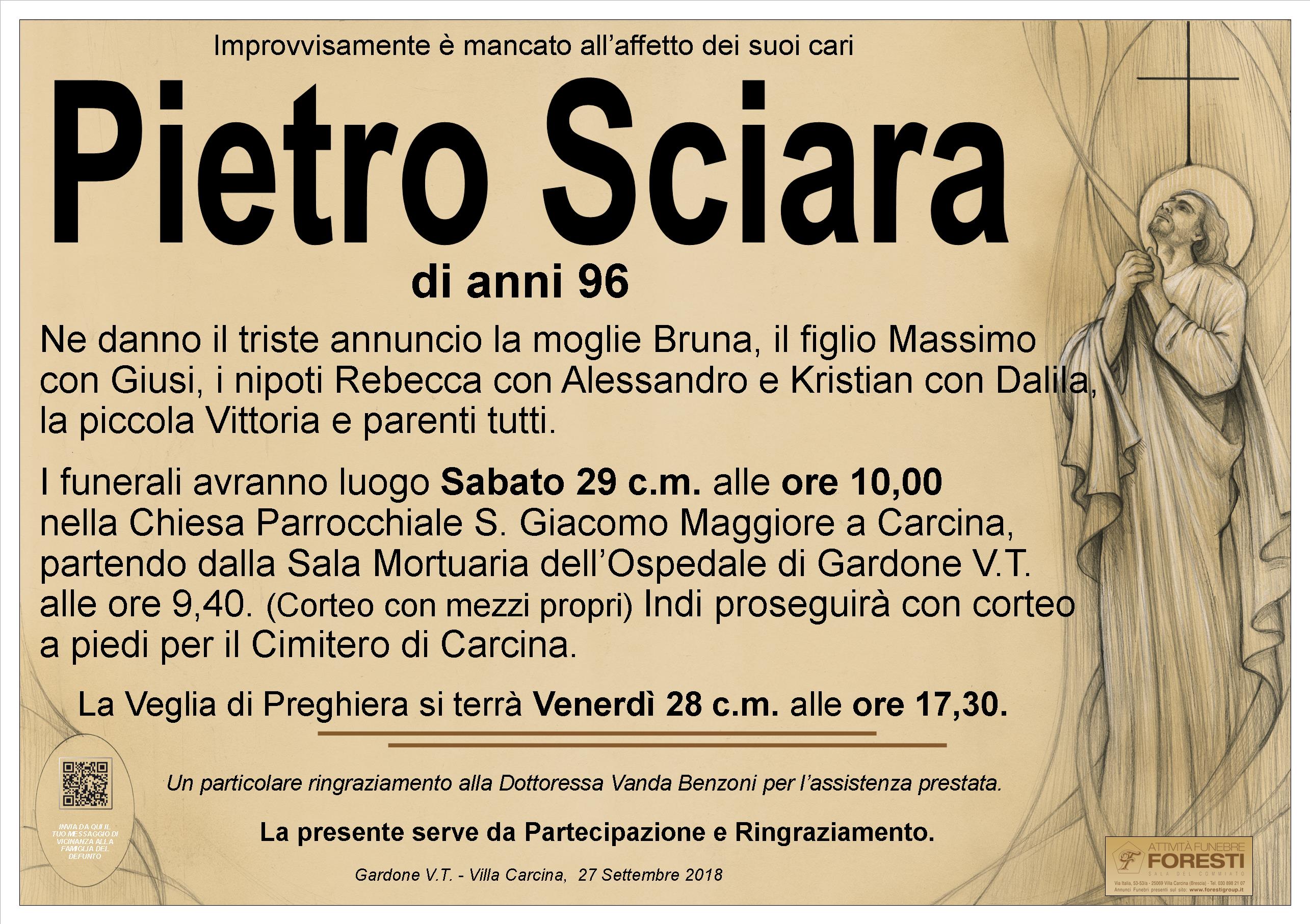 IL CARO PIETRO RIPOSA PRESSO LA SALA MORTUARIA DELL'OSPEDALE DI GARDONE V.T. CON ORARIO DI VISITA DALLE ORE 8,00 ALLE ORE 18,00.