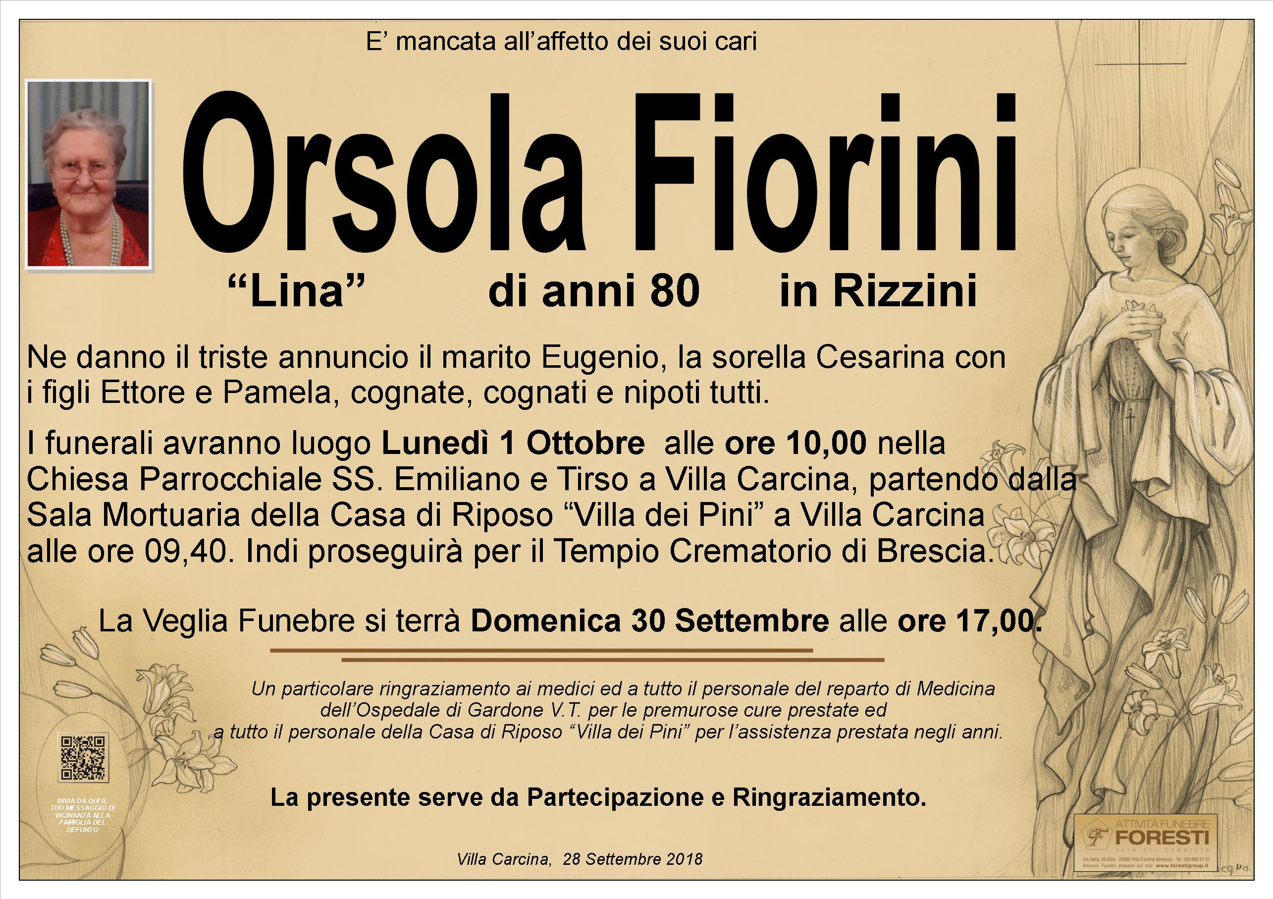 LA CARA ORSOLA RIPOSA PRESSO LA SALA MORTUARIA DELLA CASA DI RIPOSO "VILLA DEI PINI" A VILLA CARCINA.