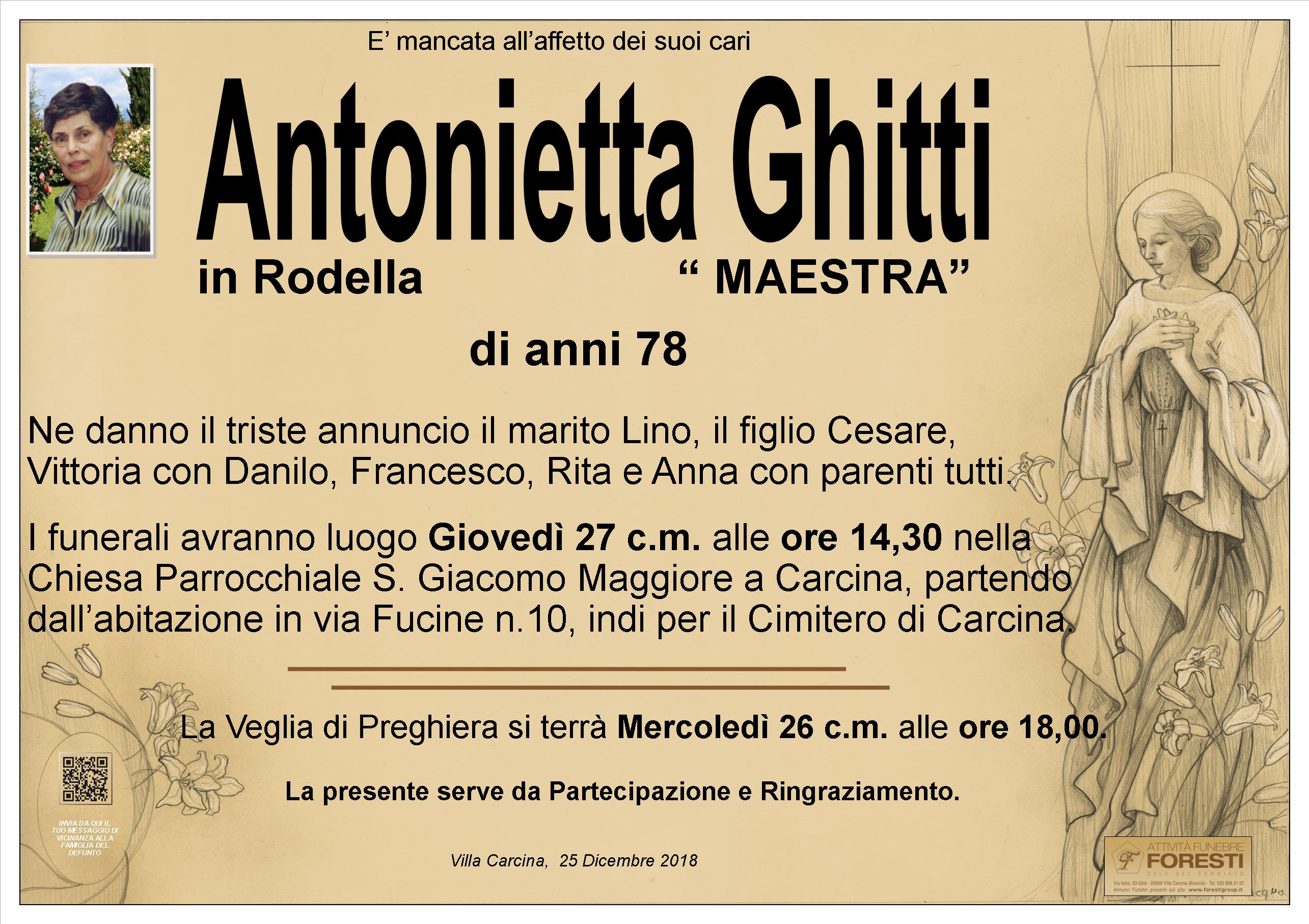 I FUNERALI AVRANNO LUOGO NELLA CHIESA PARROCCHIALE S. GIACOMO MAGGIORE A CARCINA GIOVEDI' 27 C.M. ALLE ORE 14,30.
