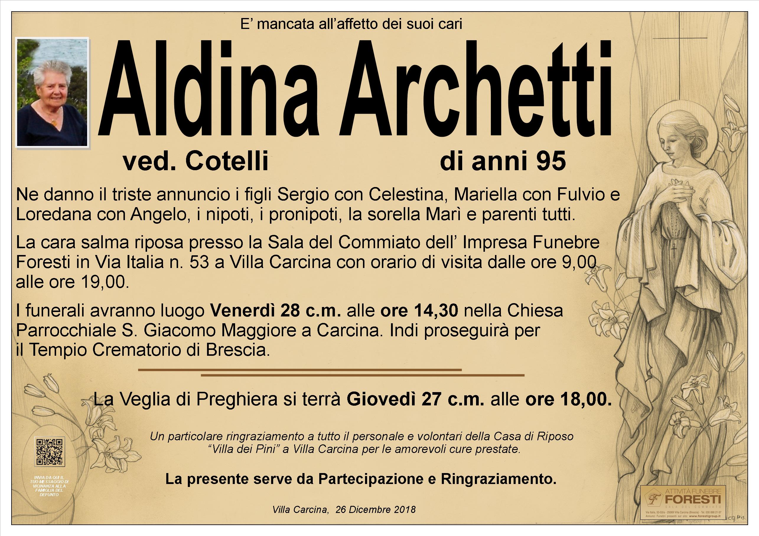 LA CARA ALDINA RIPOSA PRESSO LA SALA DEL COMMIATO DELL'IMPRESA FUNEBRE FORESTI CON ORARIO DI VISITA CONTINUATO DALLE ORE 9,00 ALLE ORE 19,00.