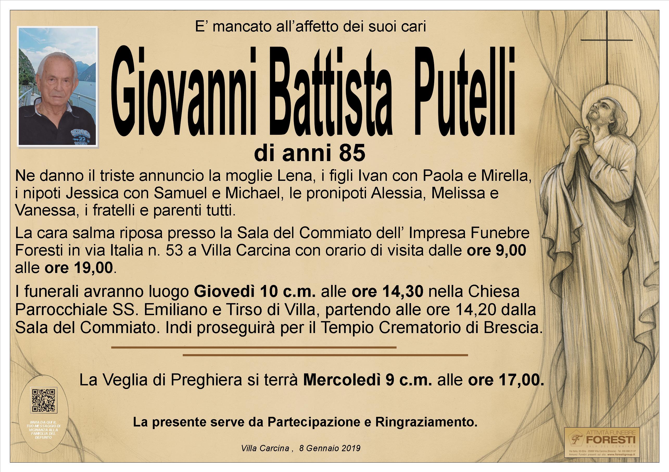 IL CARO GIOVANNI BATTISTA RIPOSA PRESSO LA SALA DEL COMMIATO DELL'IMPRESA FUNEBRE FORESTI CON ORARIO DI VISITA CONTINUATO DALLE ORE 9,00 ALLE ORE 19,00.