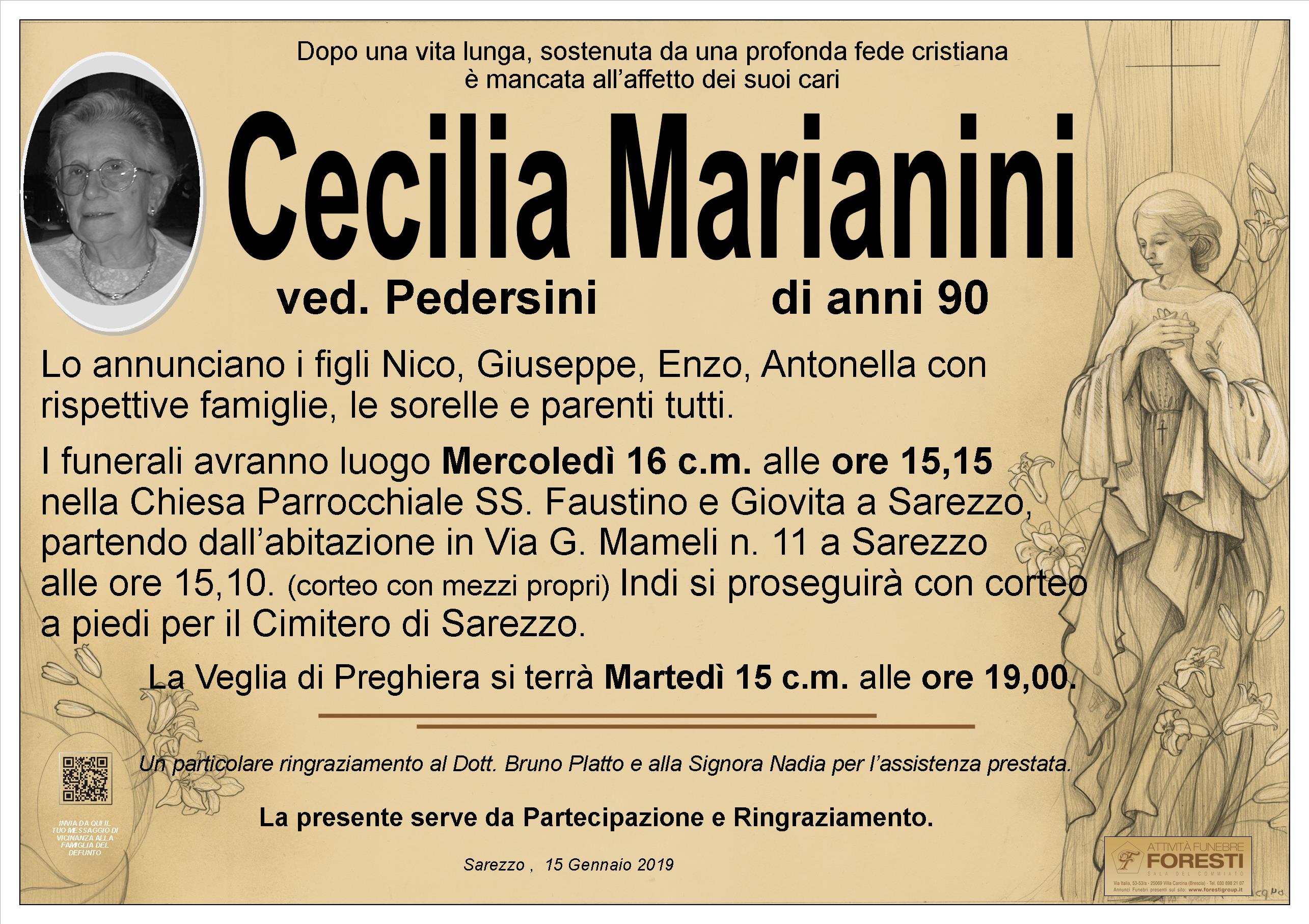 I FUNERALI AVRANNO LUOGO NELLA CHIESA PARROCCHIALE SS. FAUSTINO E GIOVITA A SAREZZO MERCOLEDI' 16 C.M. ALLE ORE 15,15.