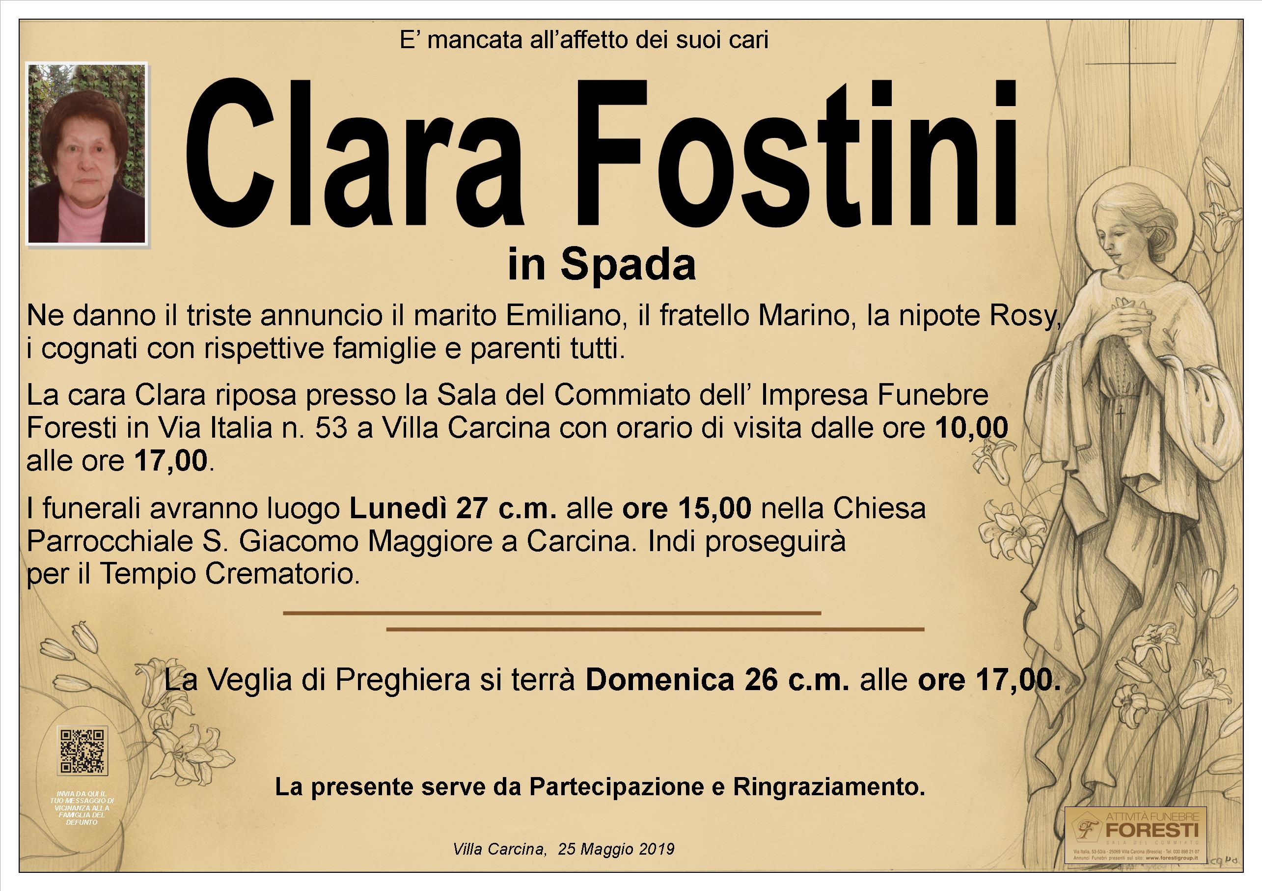LA CARA CLARA RIPOSA PRESSO LA SALA DEL COMMIATO DELL'IMPRESA FUNEBRE FORESTI CON ORARIO DI VISITA CONTINUATO DALLE ORE 10,00 ALLE ORE 17,00.