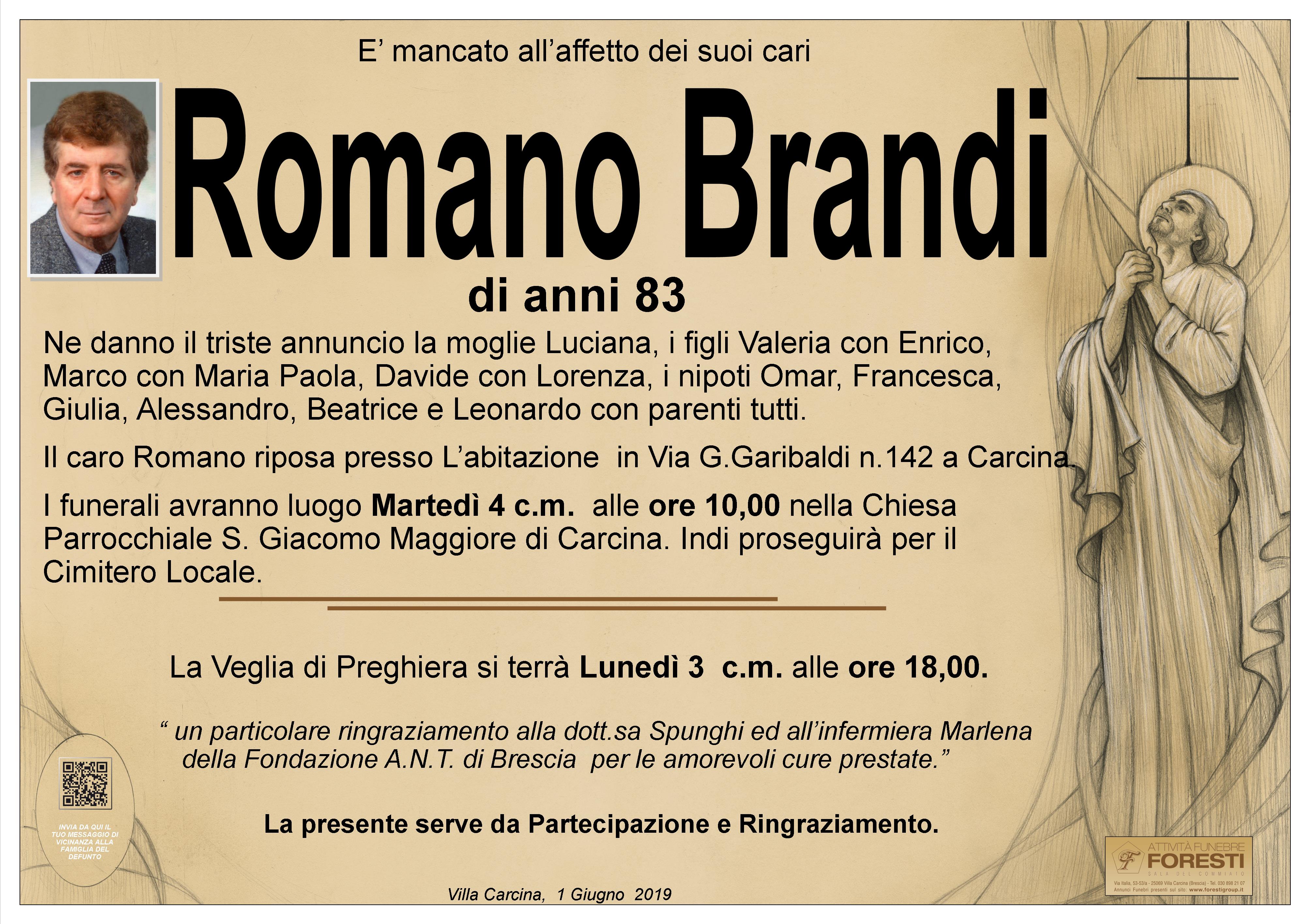 Brandico, 2 Giugno 2019 Abbiatico Marina con Famiglia è vicina a Luciana e ai figli per la morte dell’amato Romano .