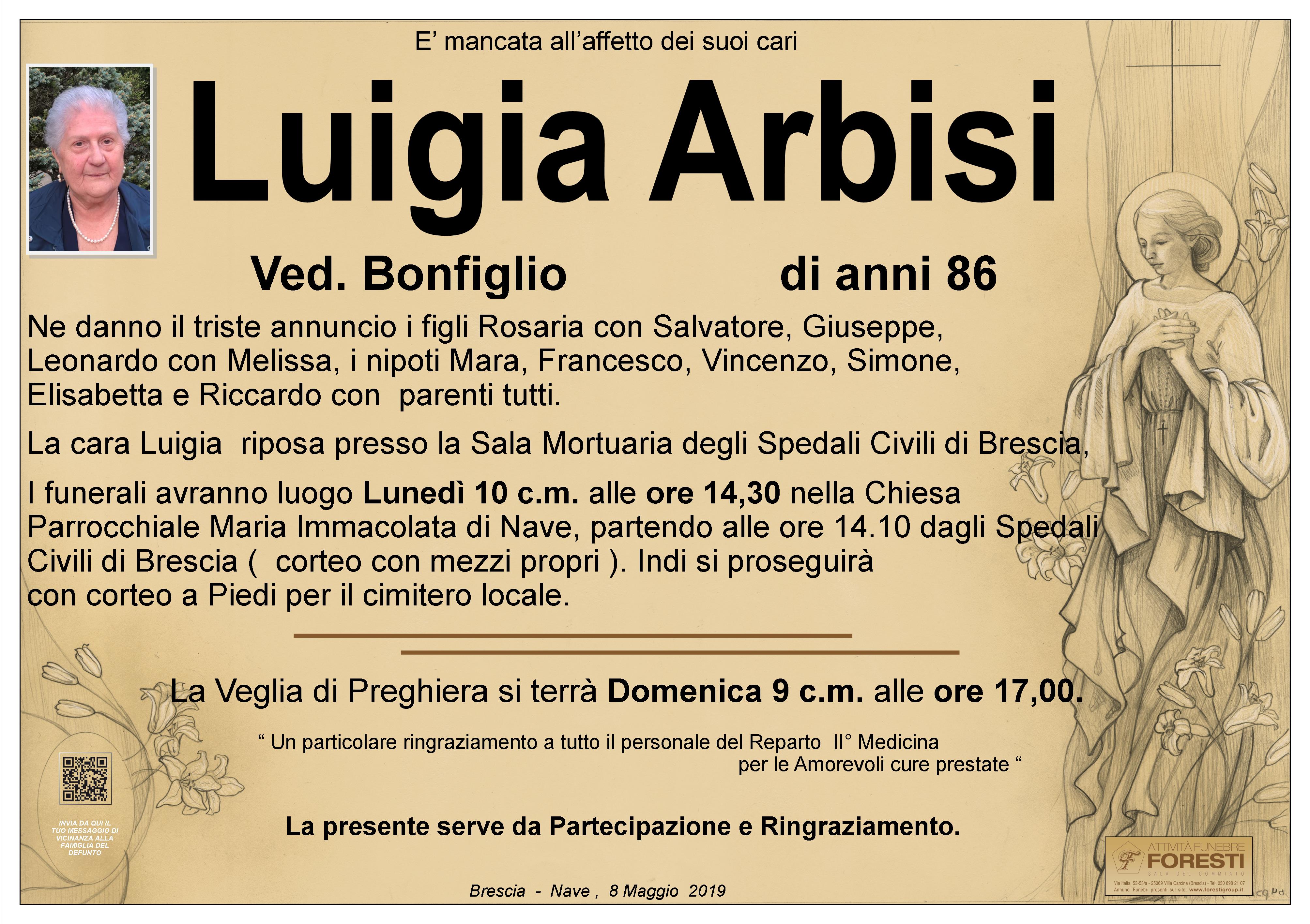 LA CARA LUIGIA RIPOSA PRESSO LA SALA MORTUARIA DEGLI SPEDALI CIVILI DI BRESCIA
