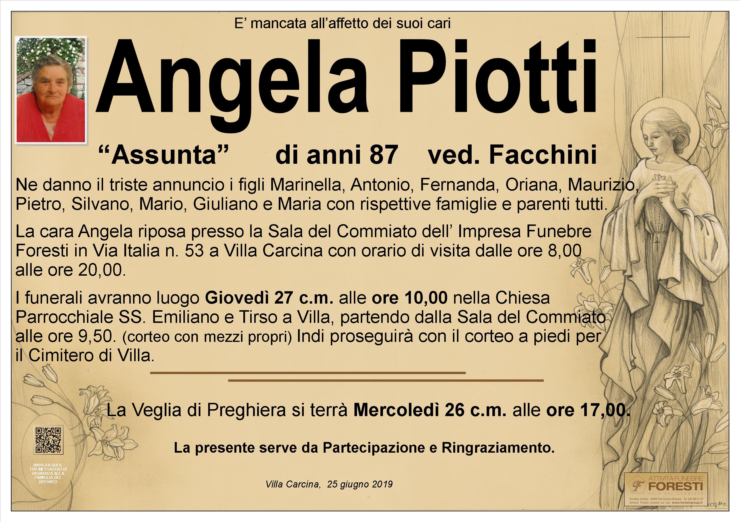 LA CARA ANGELA RIPOSA PRESSO LA SALA DEL COMMIATO DELL'IMPRESA FUNEBRE FORESTI CON ORARIO DI VISITA CONTINUATO DALLE ORE 8,00 ALLE ORE 20,00.
