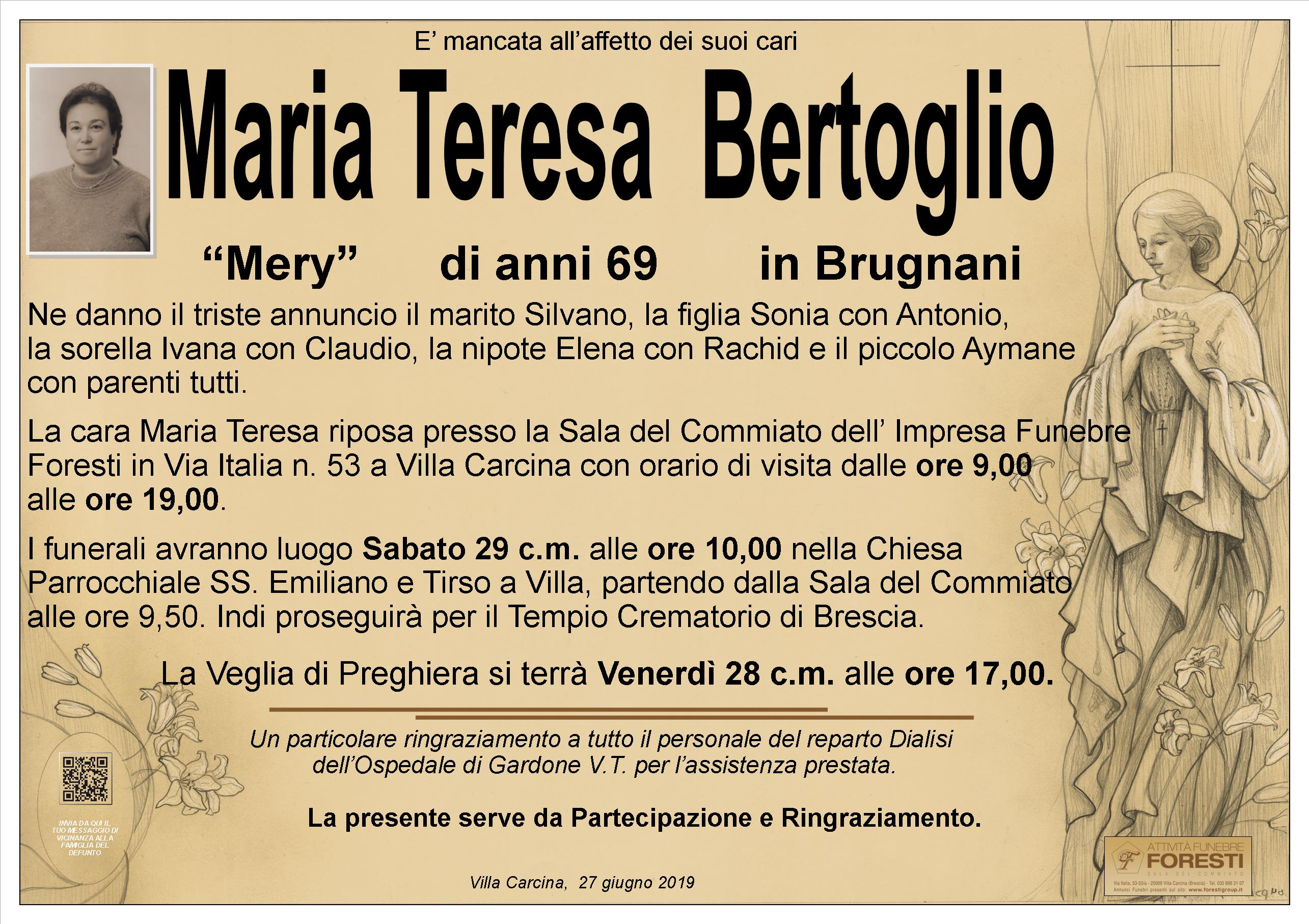 LA CARA MARIA TERESA RIPOSA PRESSO LA SALA DEL COMMIATO CON ORARIO CONTINUATO DI APERTURA 9 / 19.